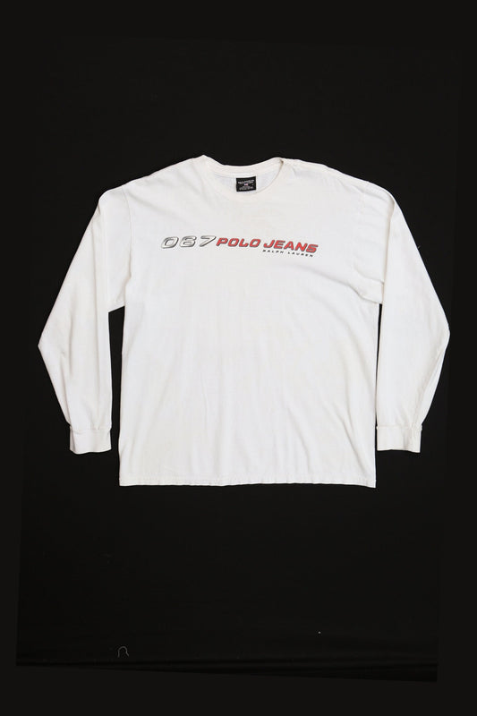 067 Polo Jeans Long Sleeve White Graphic Shirt