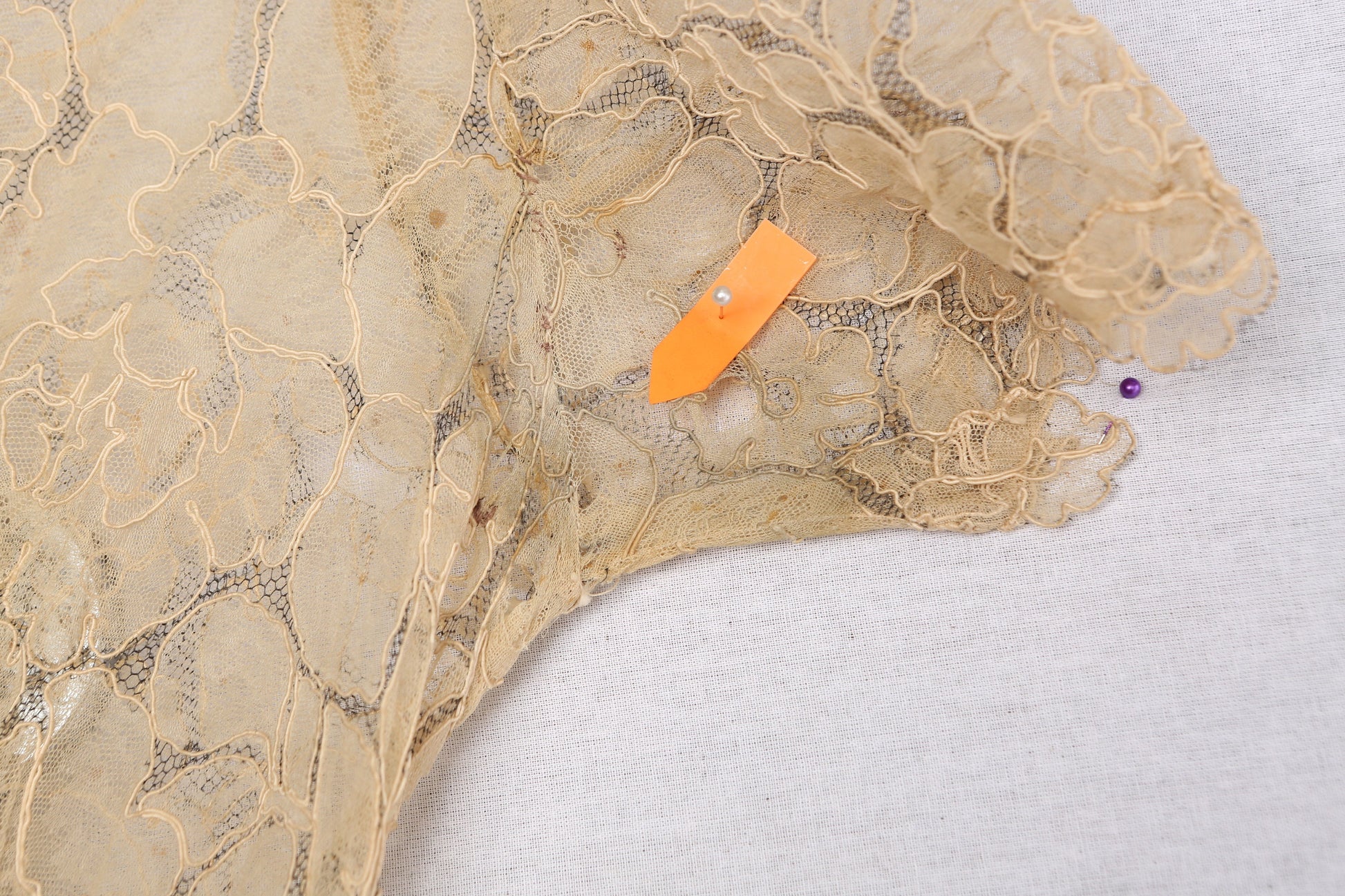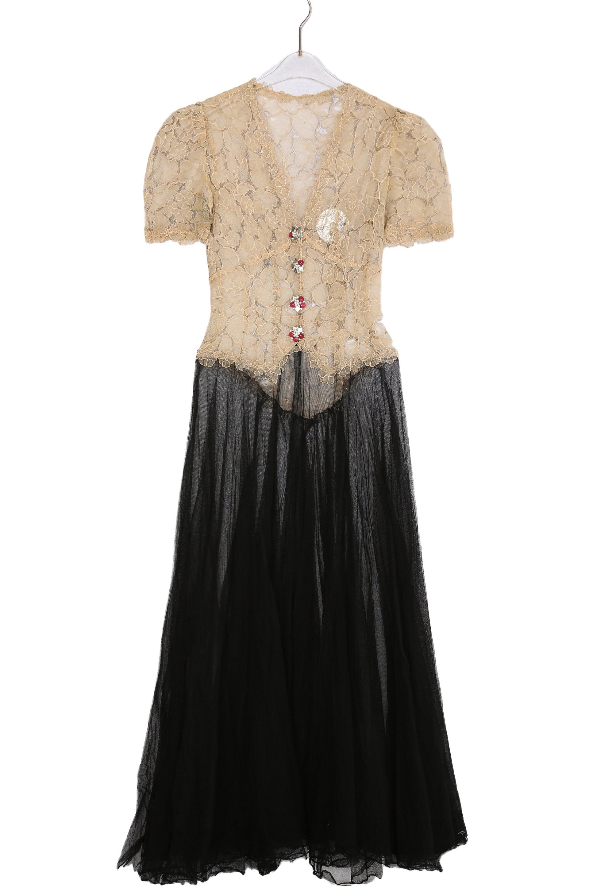 1930s Women Long Nightgown Dress - Floral Lace Top Fabric and Black