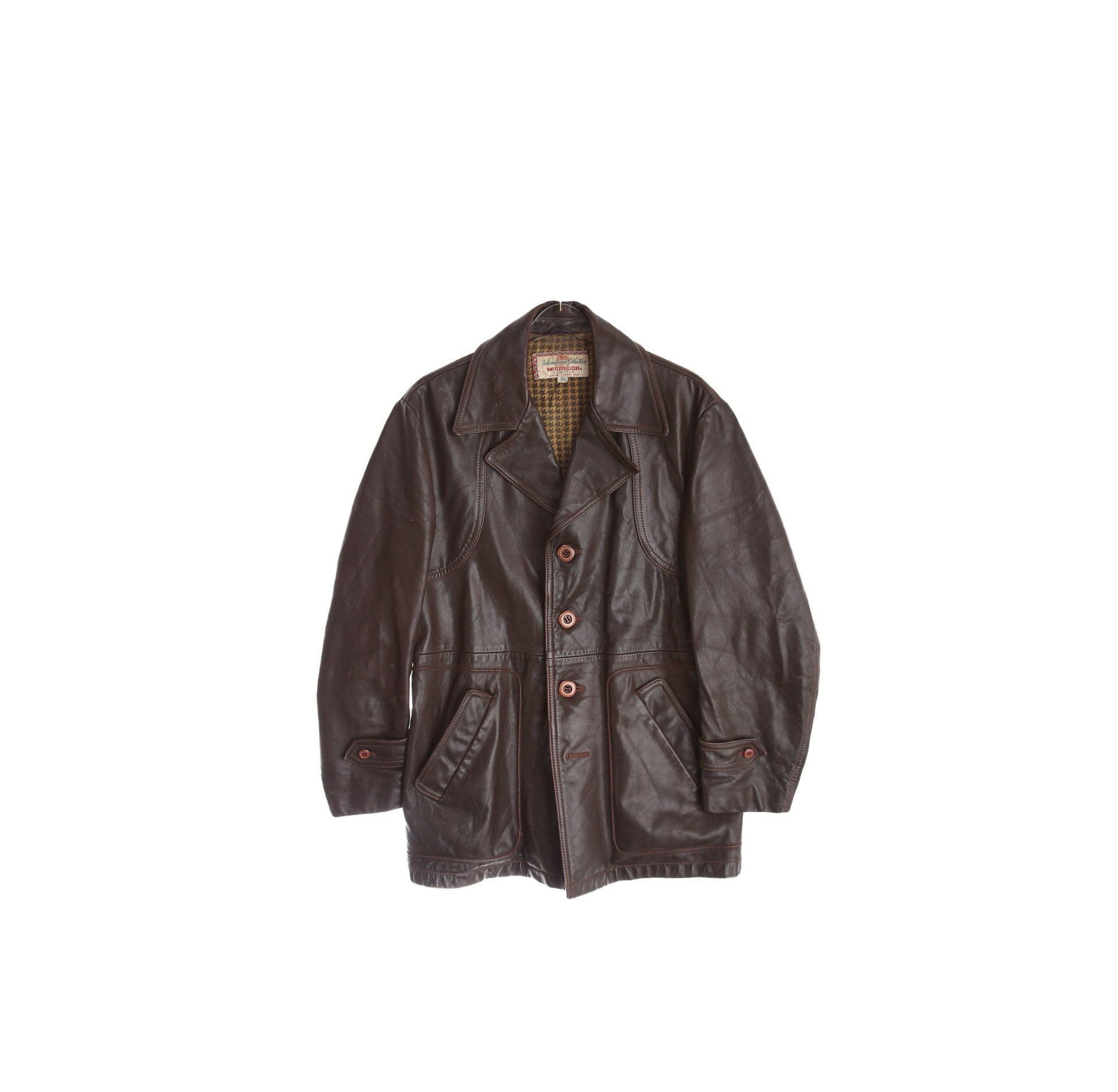1940s-50s Men's Brown Sport Leather Coat - Made by McGregor in Argentina