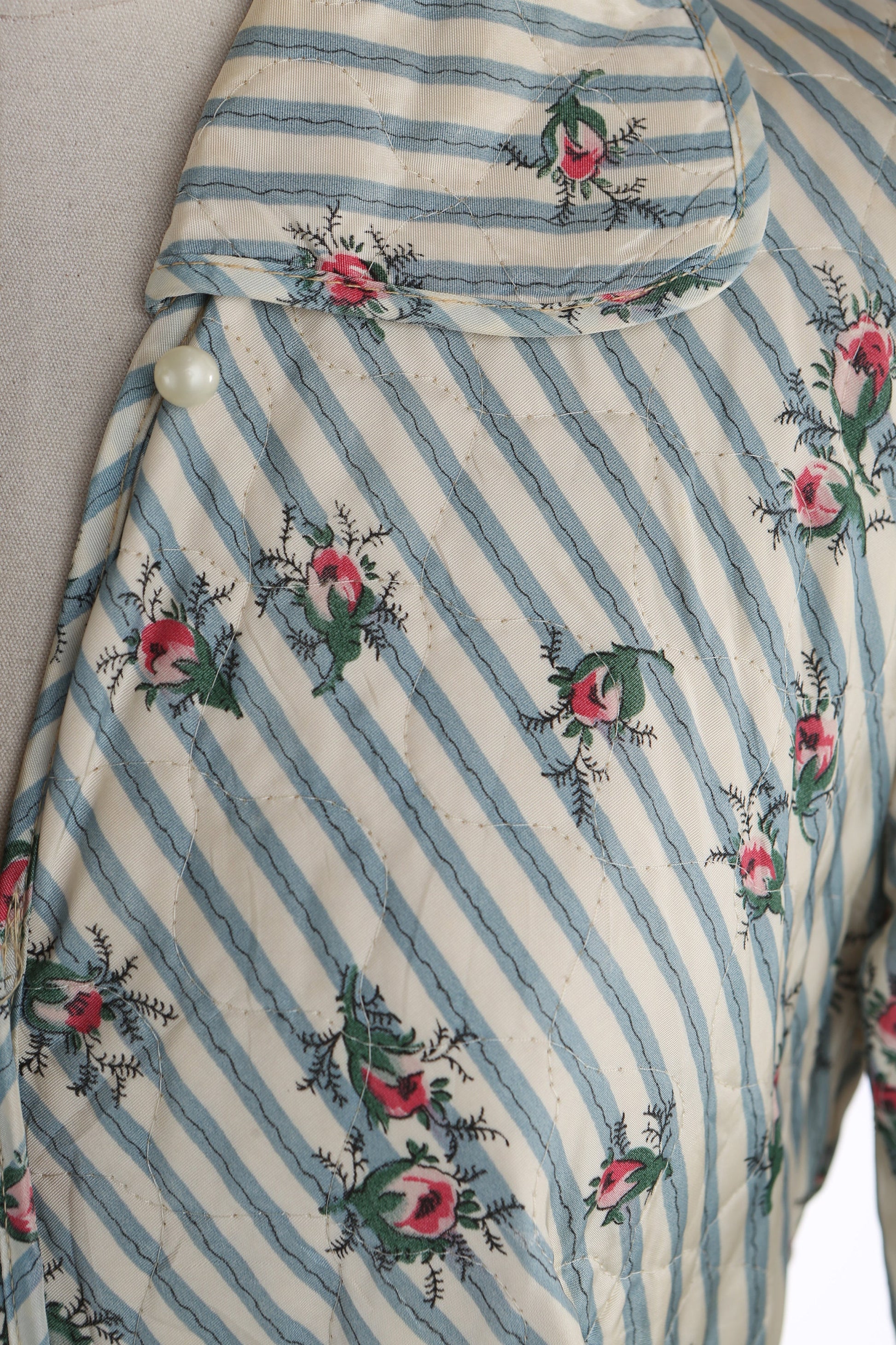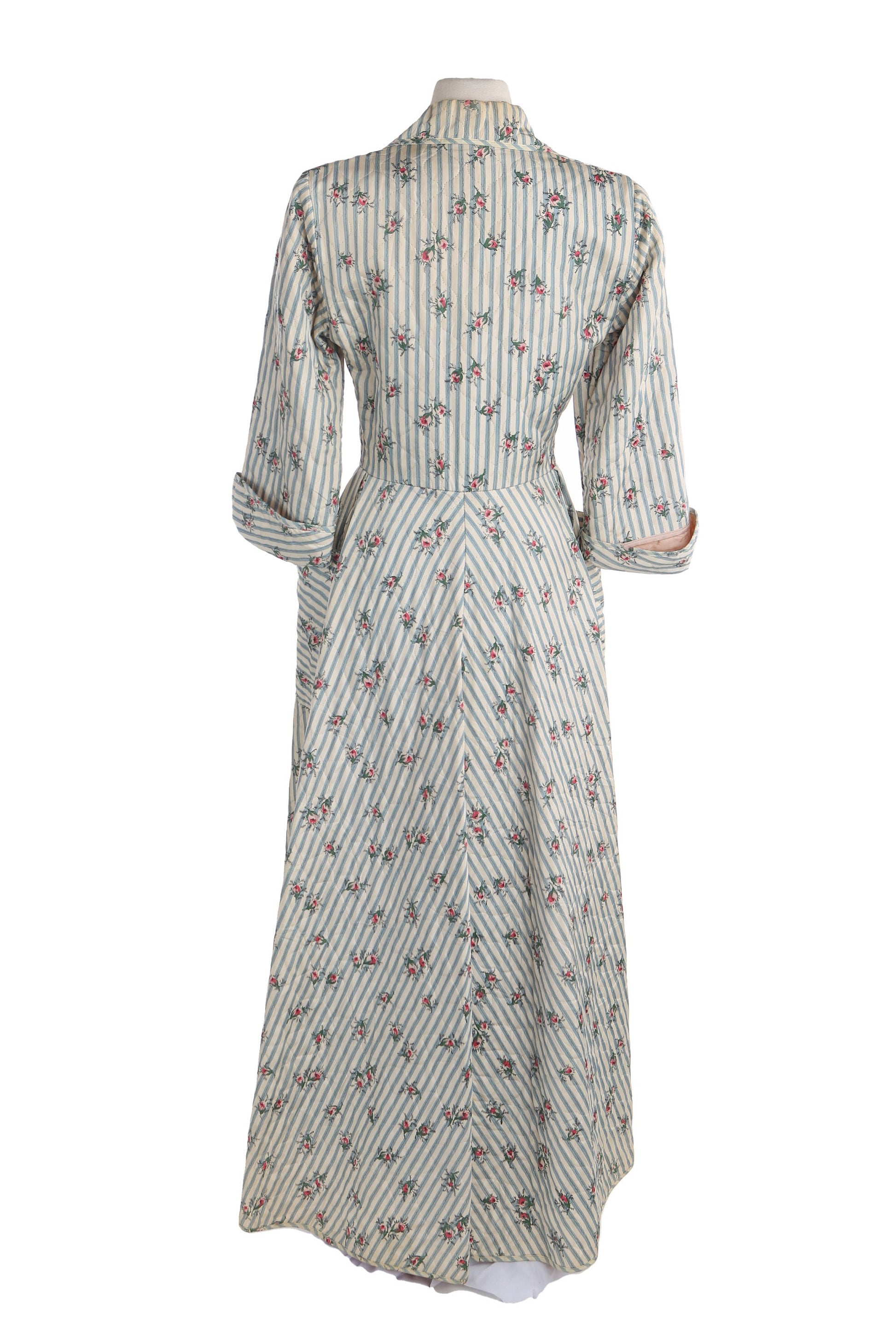 1940's White Floral Print Striped Long Dress