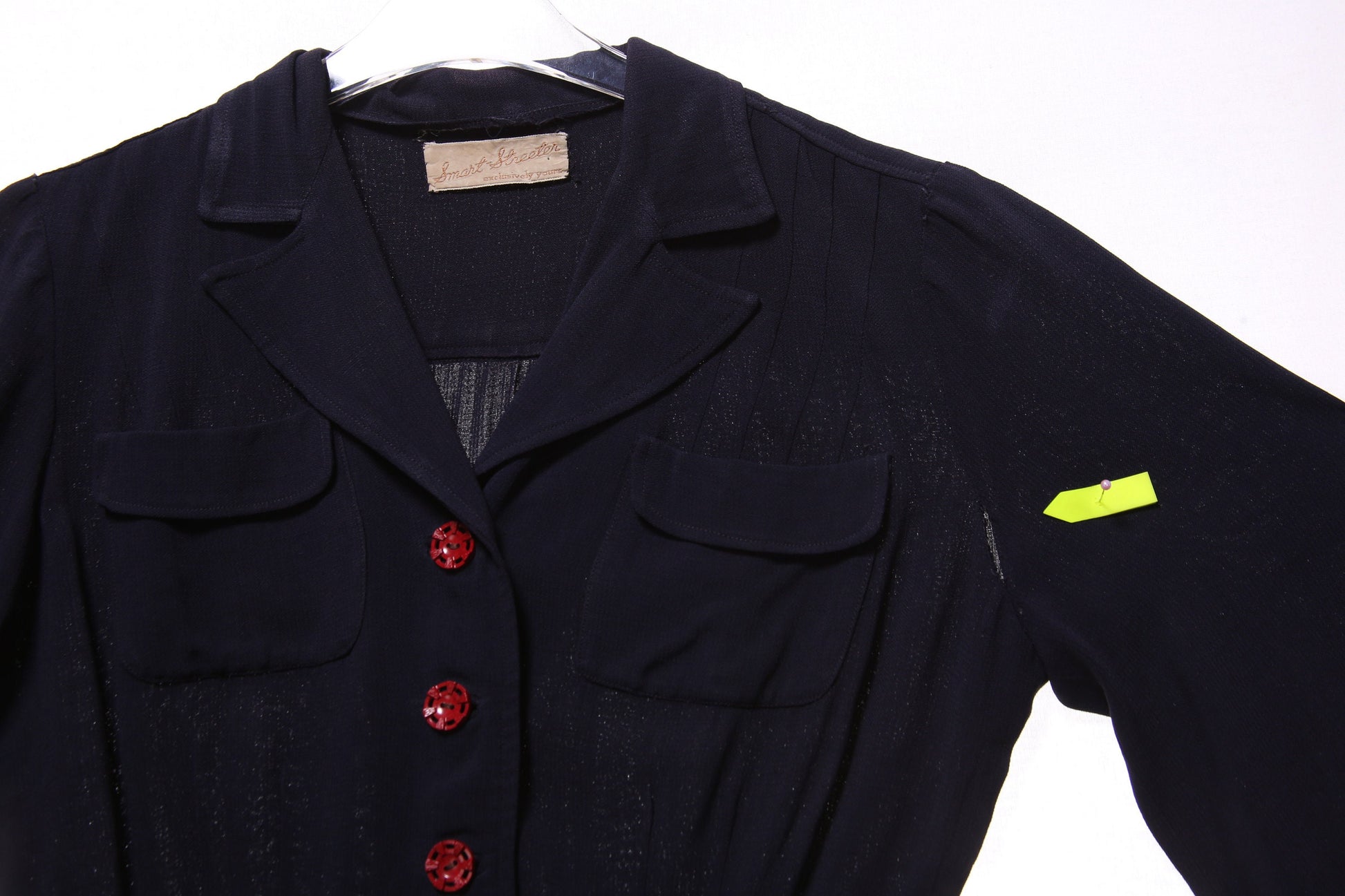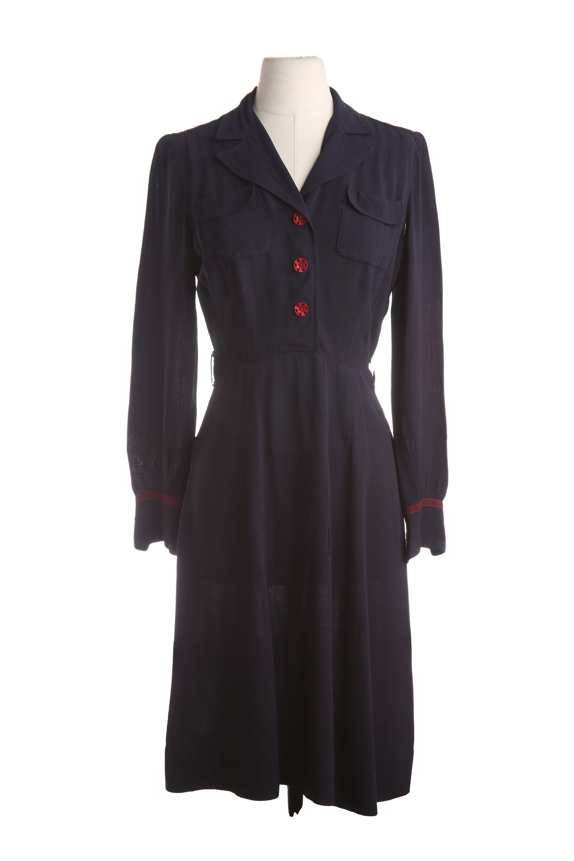 1940s Women Blue Casual Dress with Red Buttons by Smart Streeter