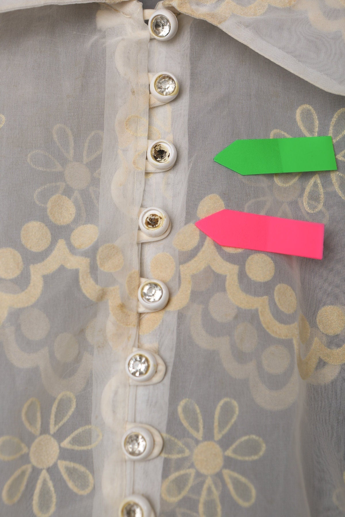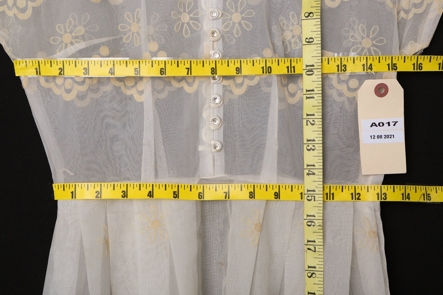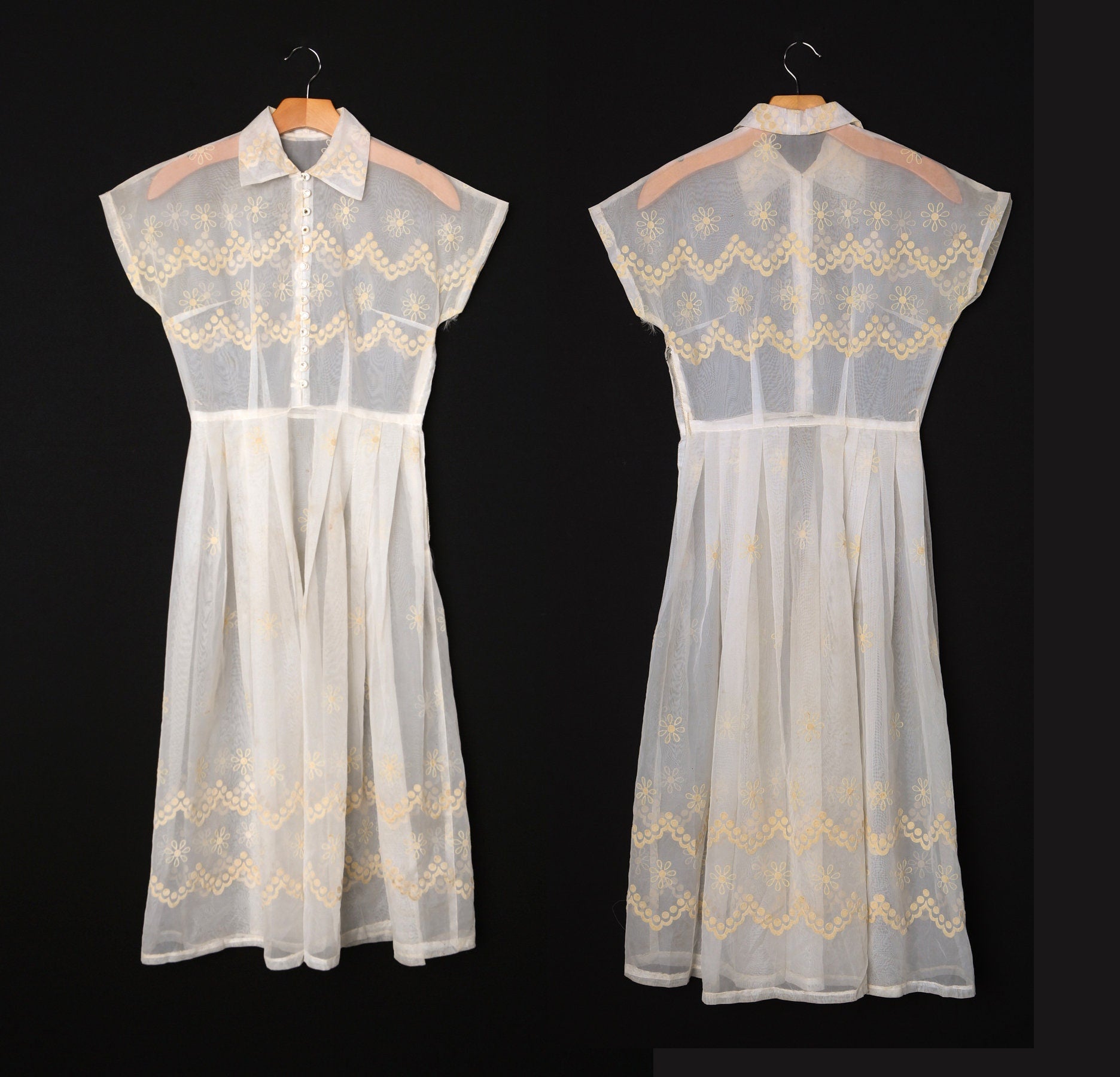 1950's White Sheer Dress / Floral Pattern / Vintage / Short Sleeve