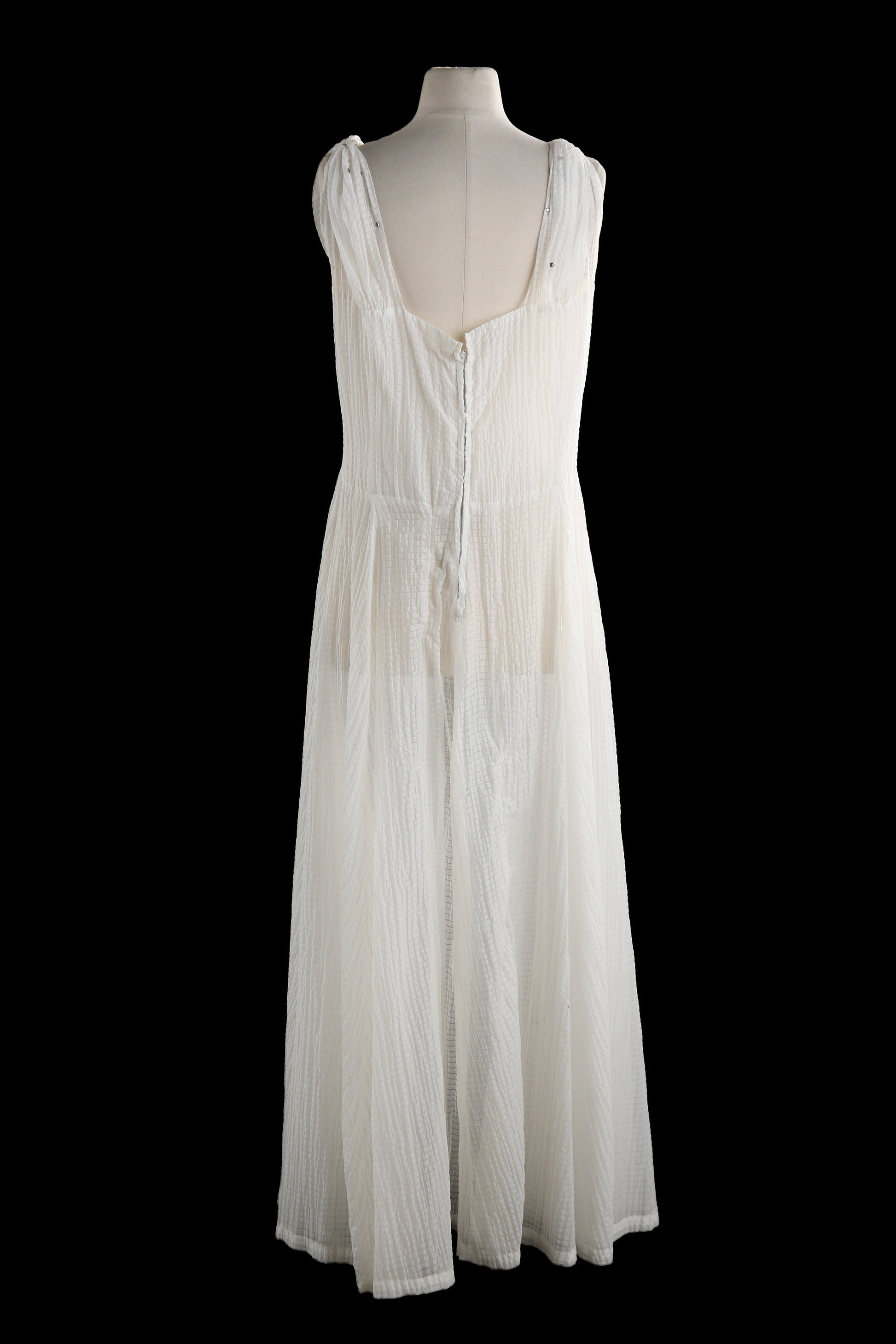 1950's Women White Evening Dress - White Sheer Polyester Fabric