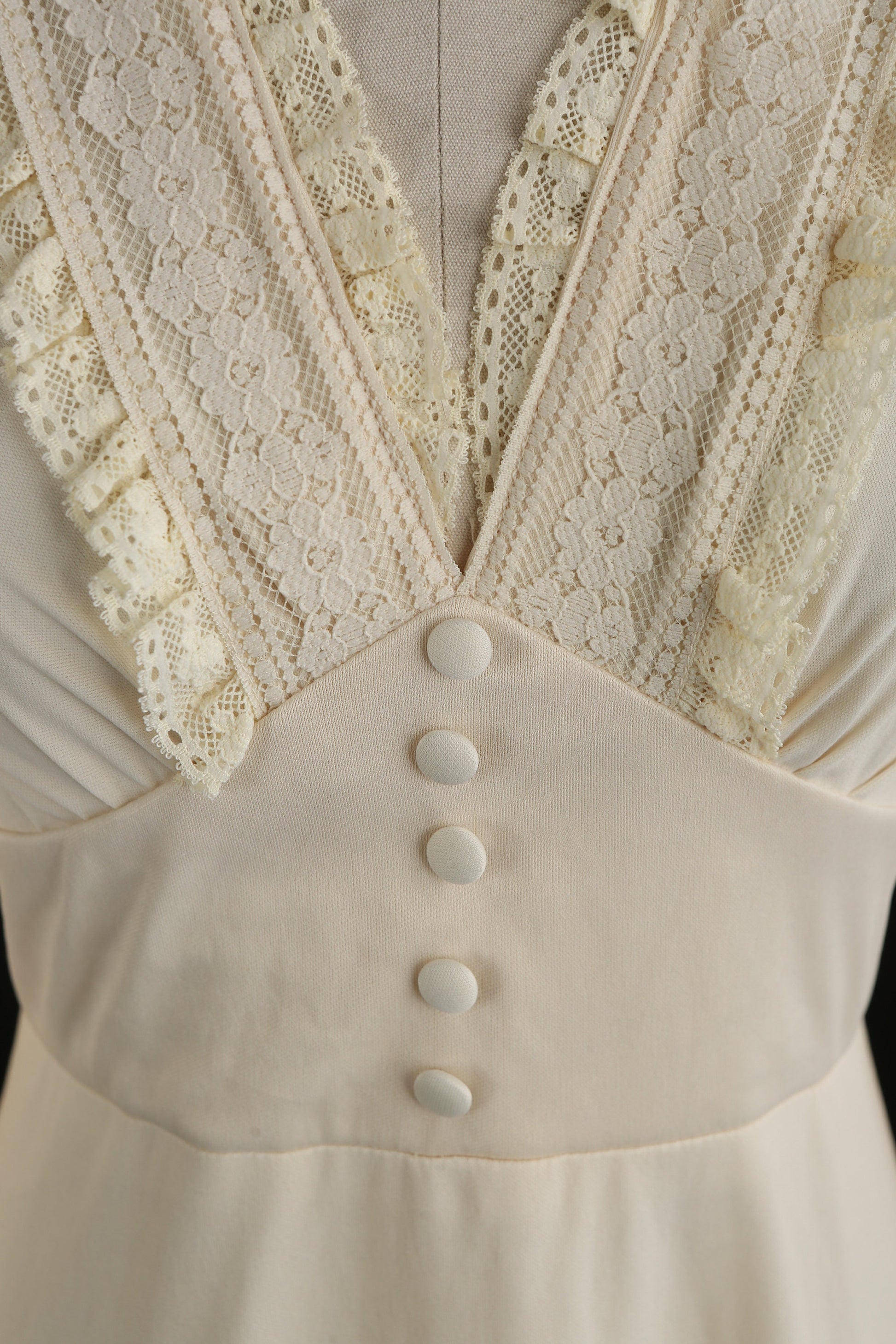 1970s Women Beige Casual Long Dress with Lace Collar Details