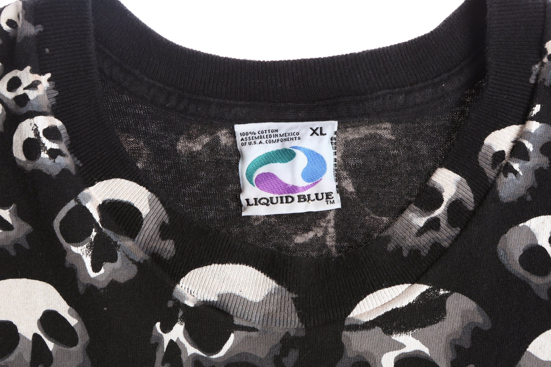 1992 Liquid Blue Black Skulls Graphic T-shirt by Chris Pinkerton