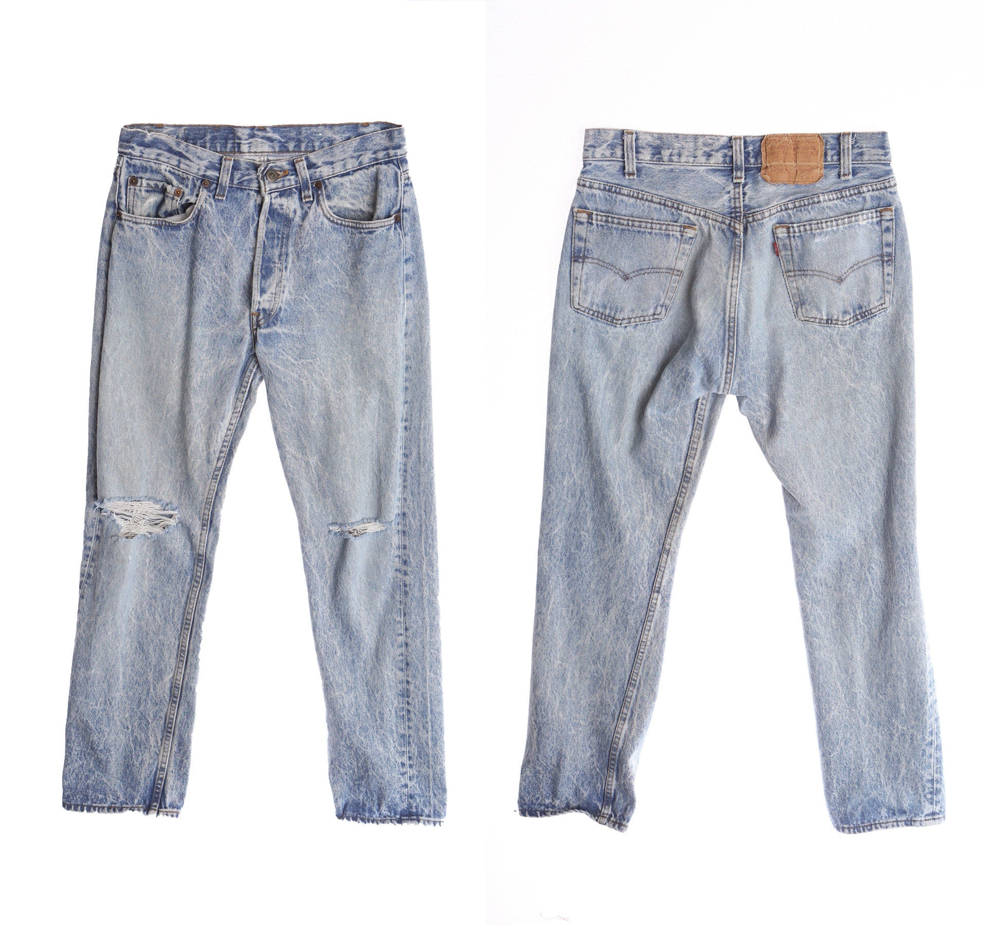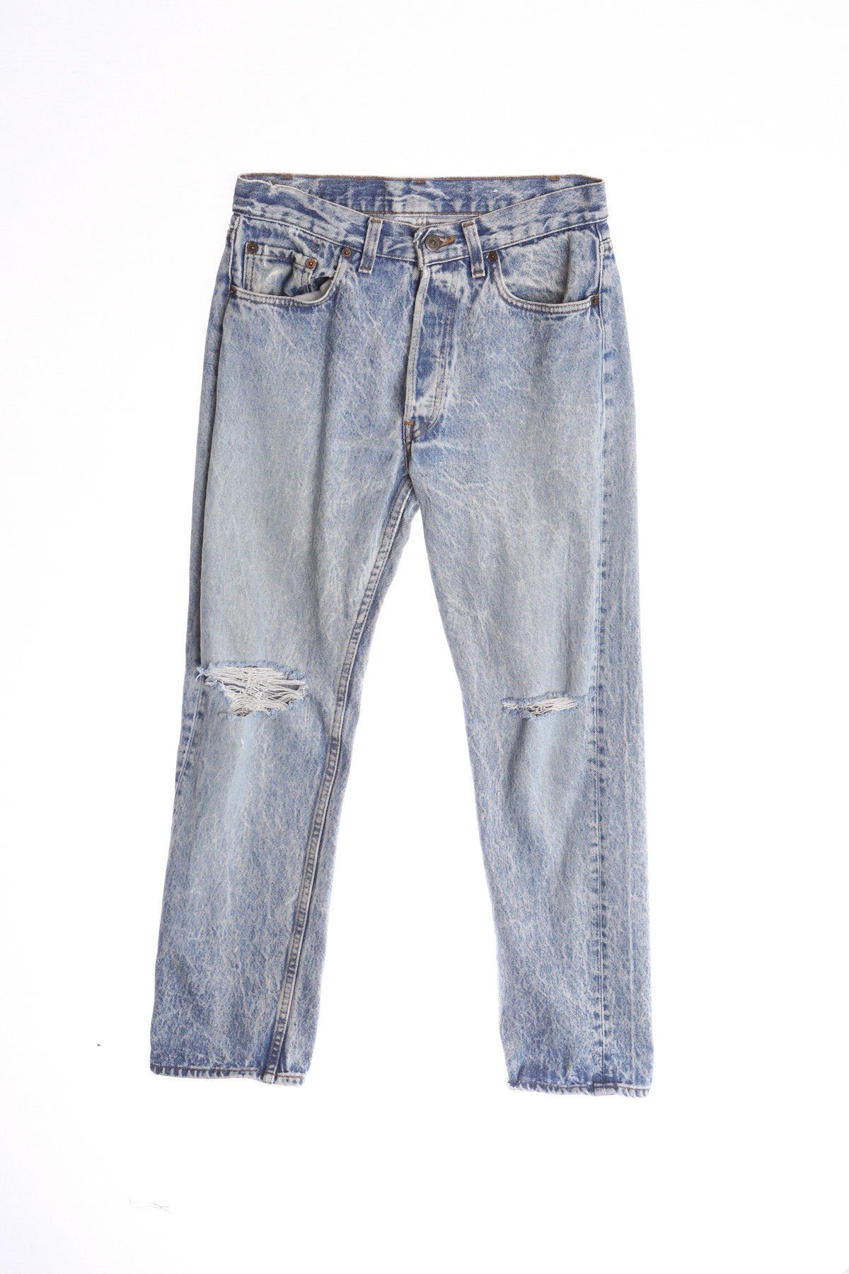 501 Levi's Blue Jeans Stone Wash - Distressed Knees