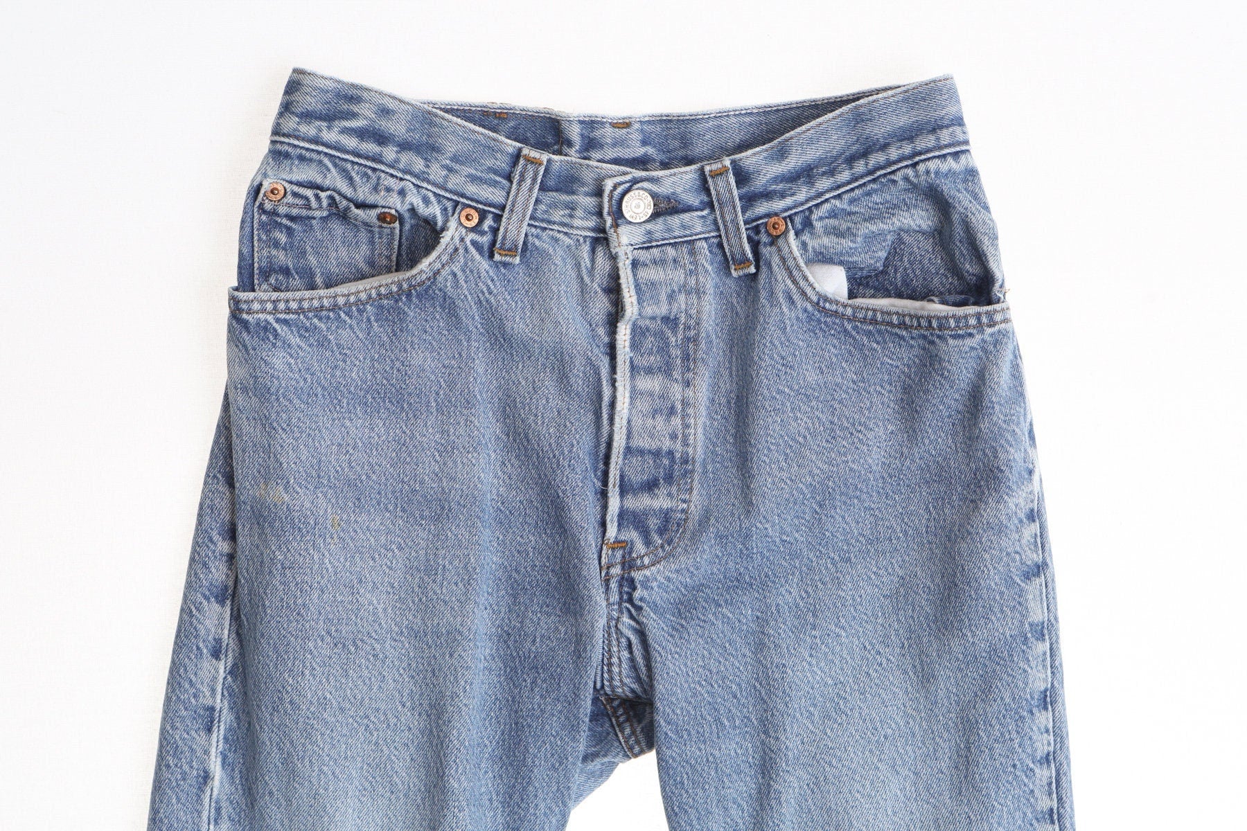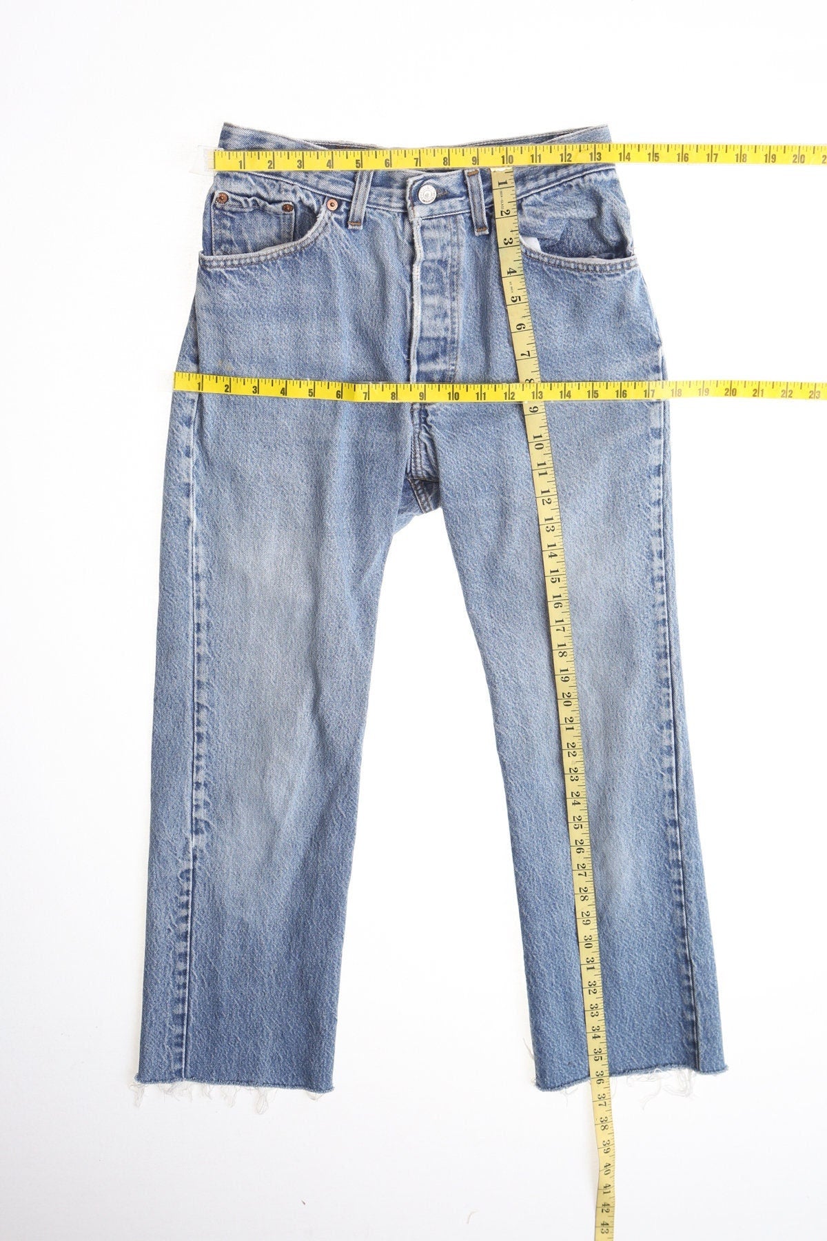 501 levi's vintage denim jeans pants blue light wash cut off