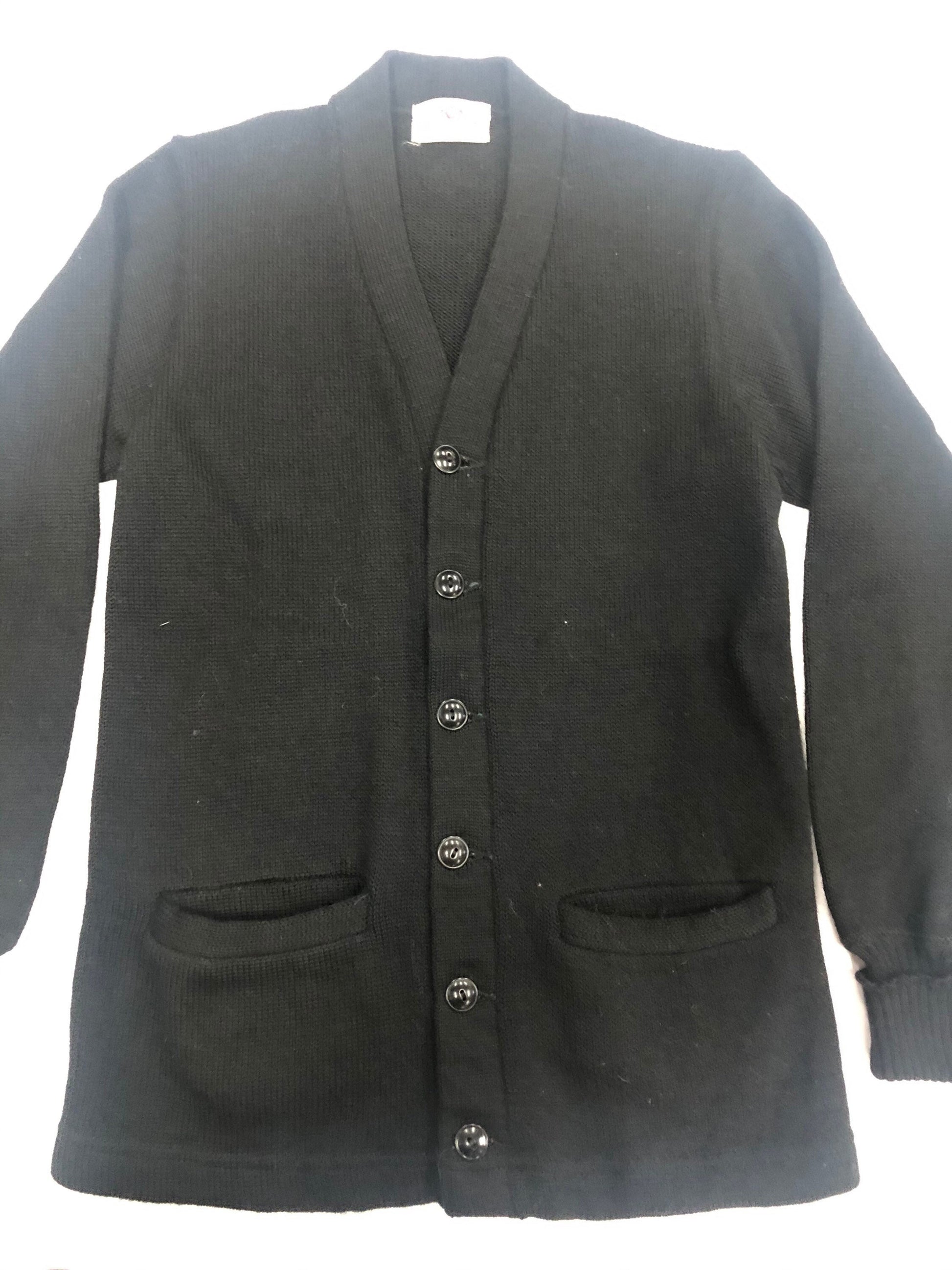 50s style campus label virgin wool cardigan button up black varsity vintage sweater