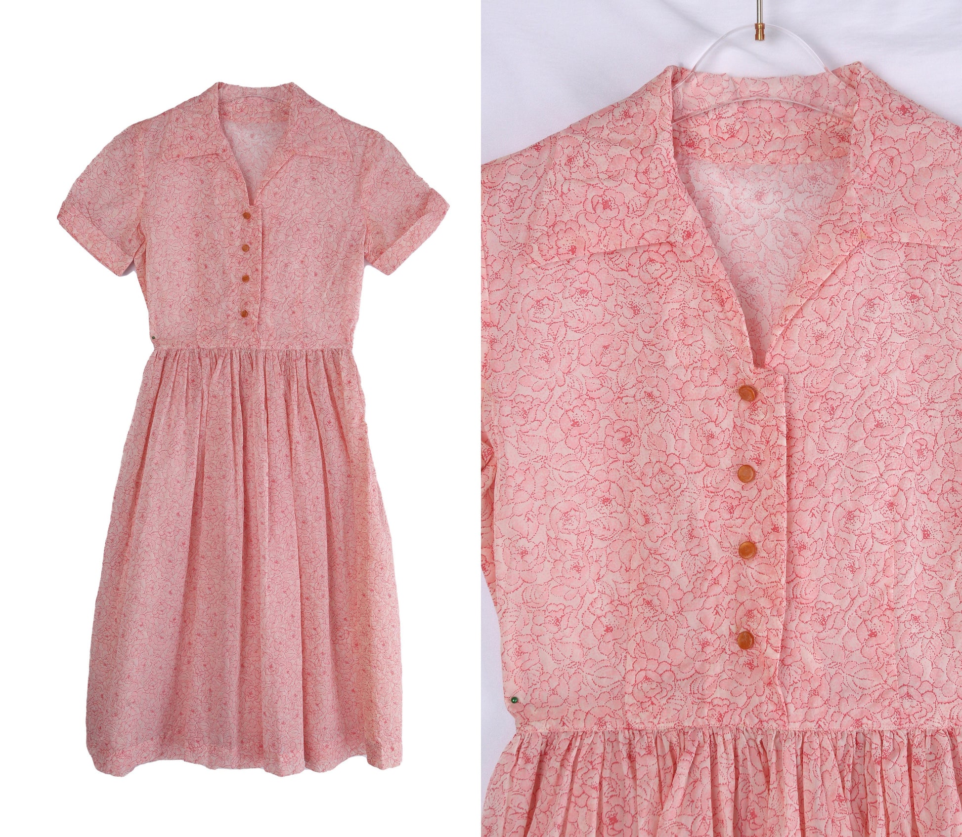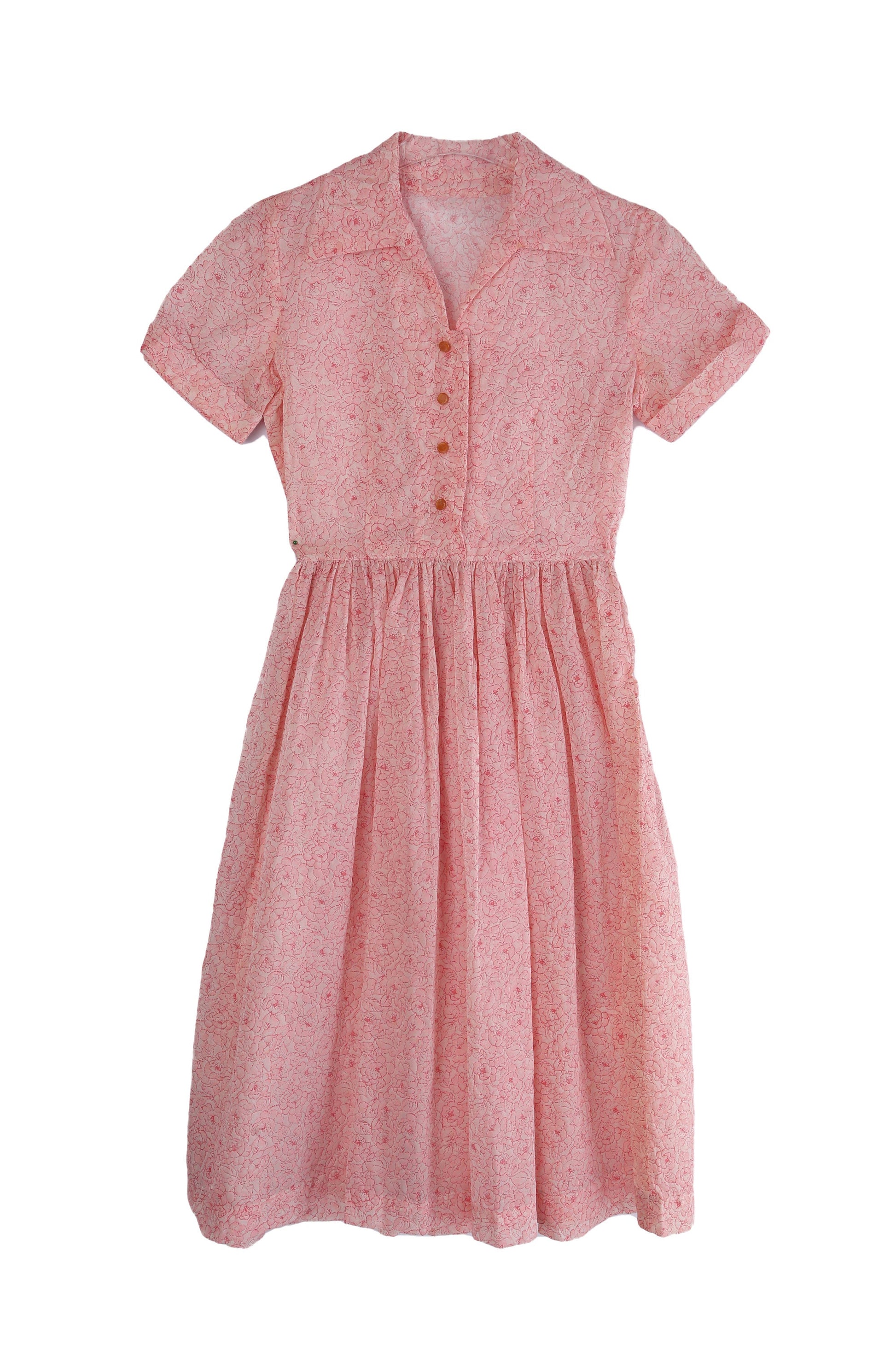 50's Women Floral Print Pink Short Sleeve casual/Summer Dress