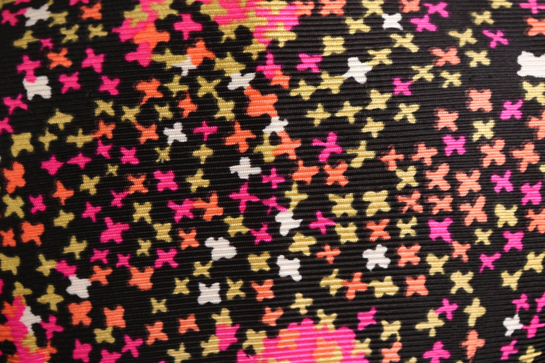 70's Back Poly Slip Dress with Waist Adjusting Strap Belt - Geometric Long Sleeve Top