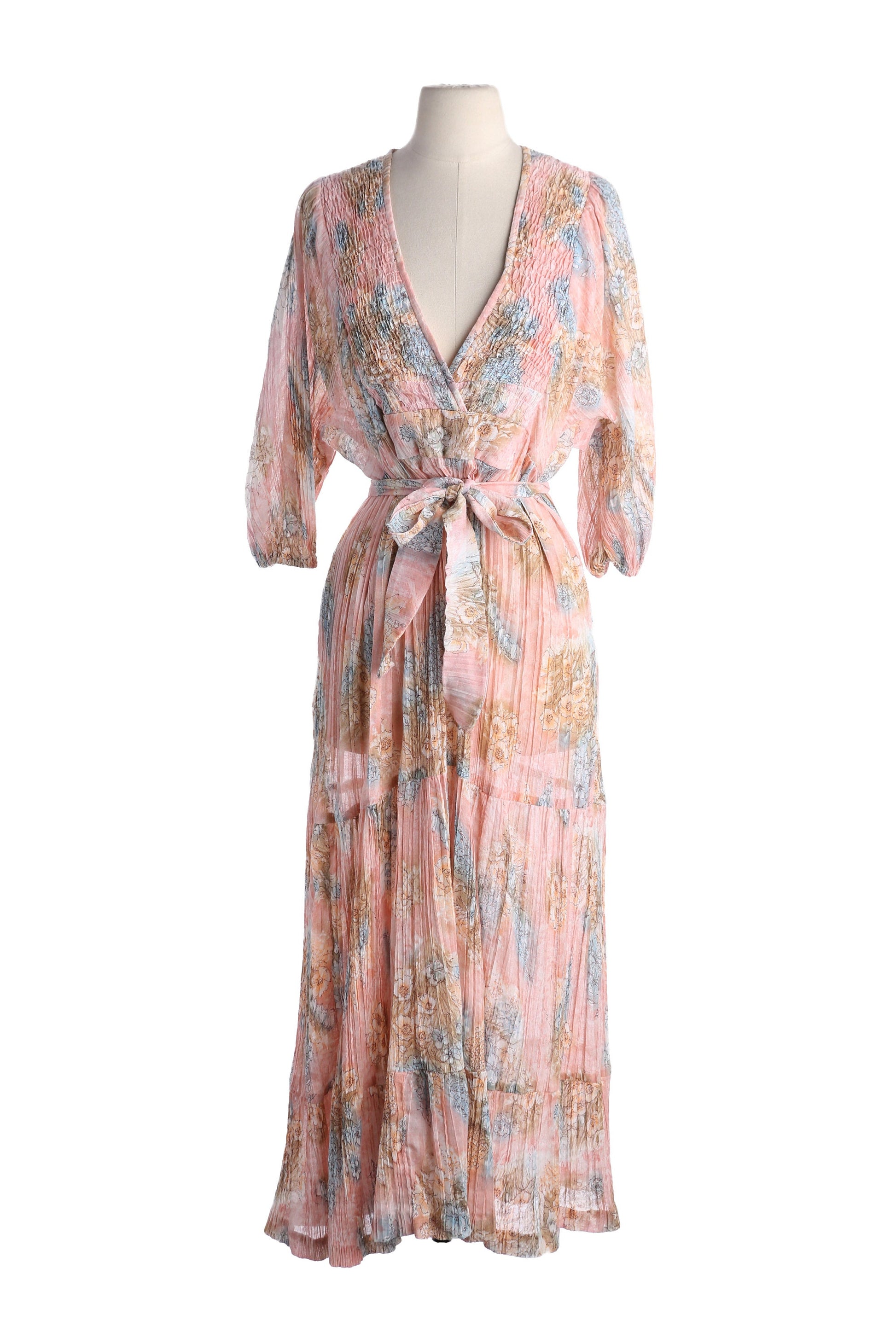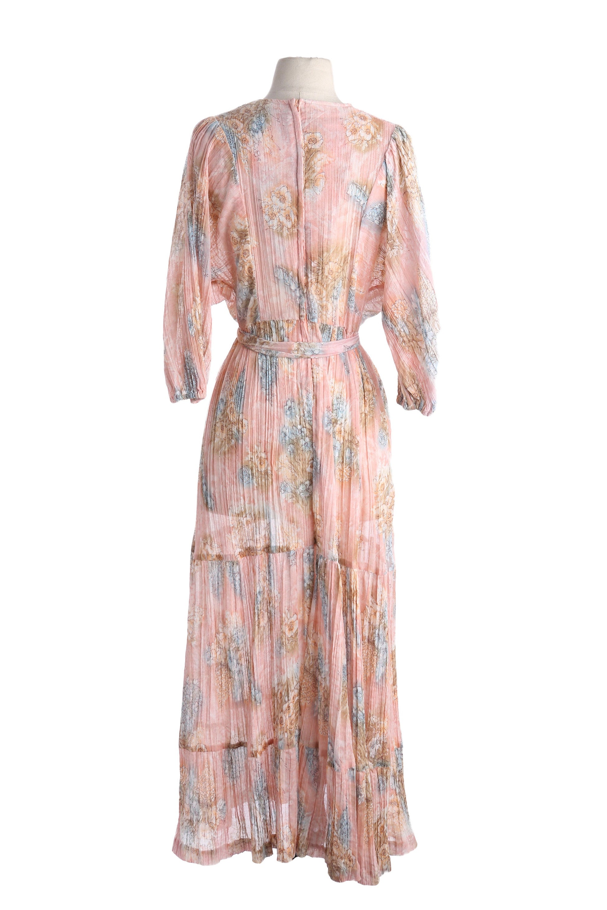 70s Floral Print Dress Maxi Summer Long Sleeve Boho by Phasell California