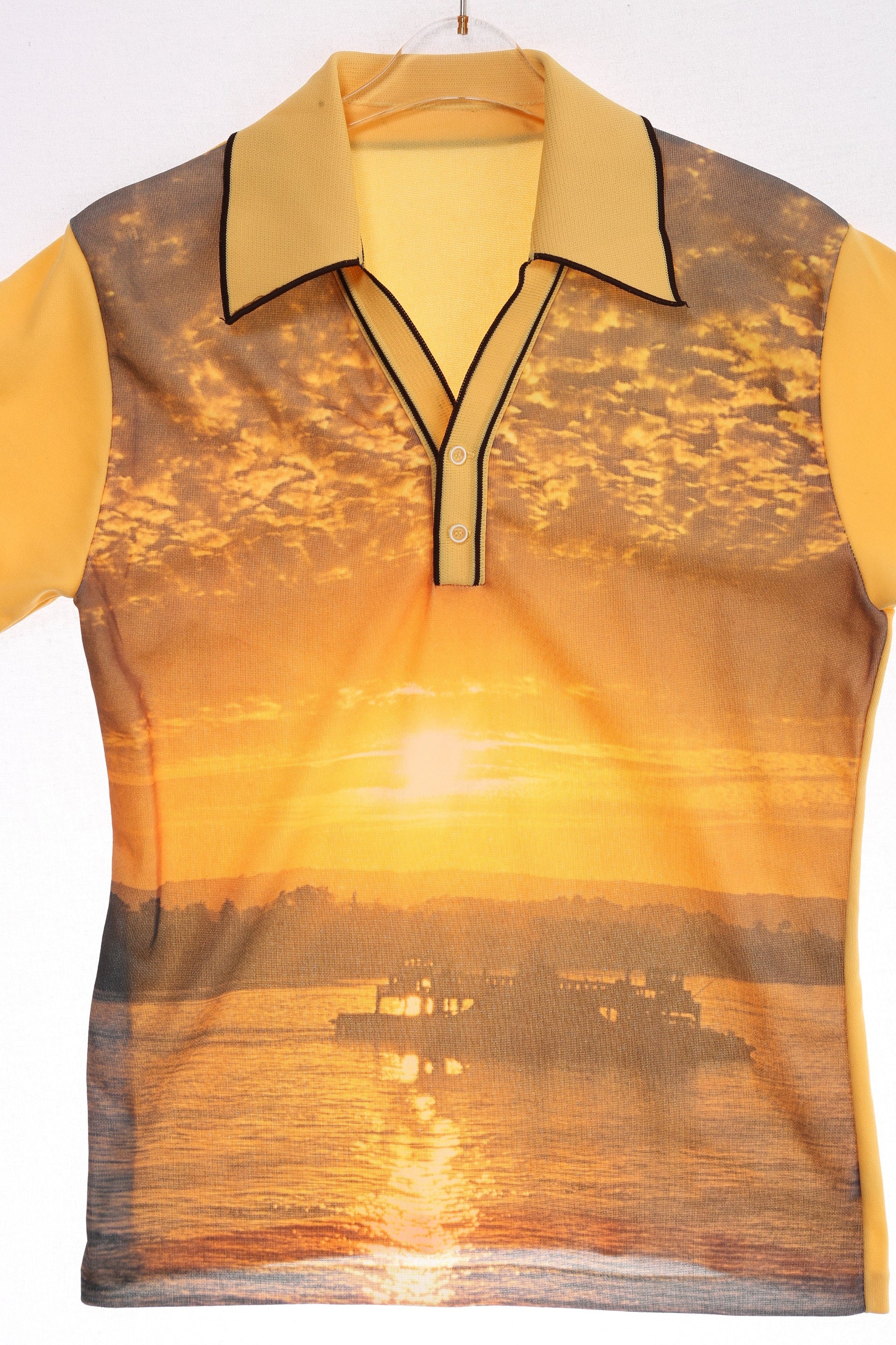 70s Geographic Print Short Sleeve Polyester Mod Shirt