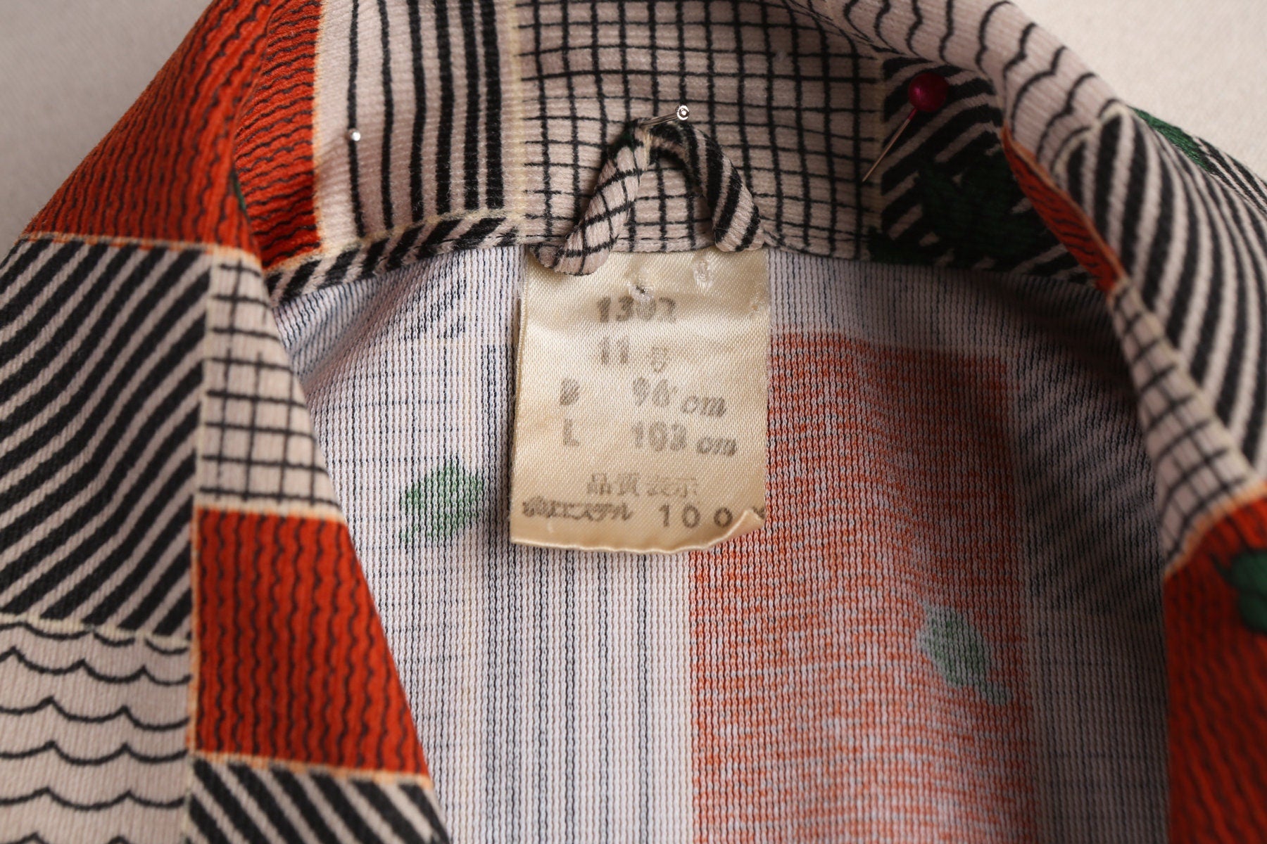 70's Long Sleeve Poly Dress - Geometric Brown Print