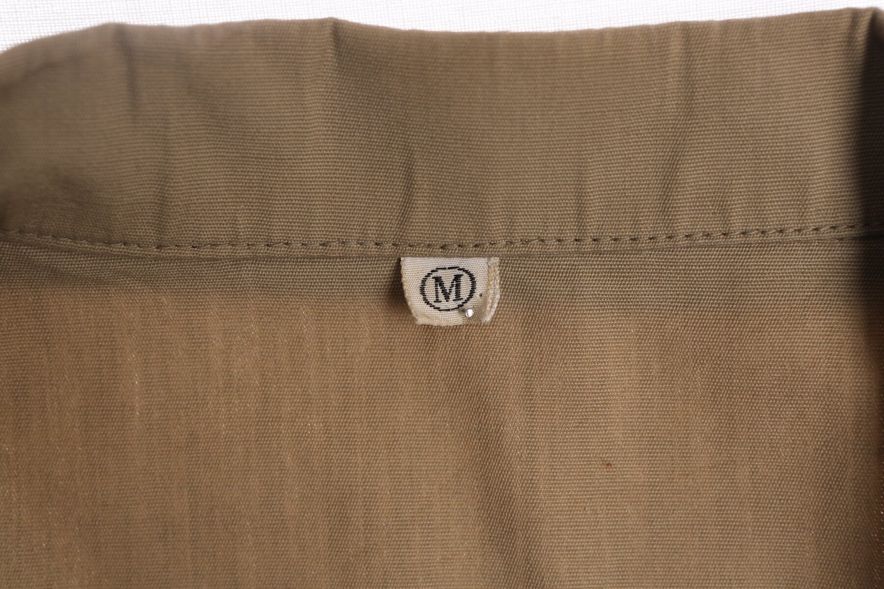 70's Men Beige Safari Cotton Long Sleeve Shirt with Jeep Cj-7 Golden Eagle Back Embroidery