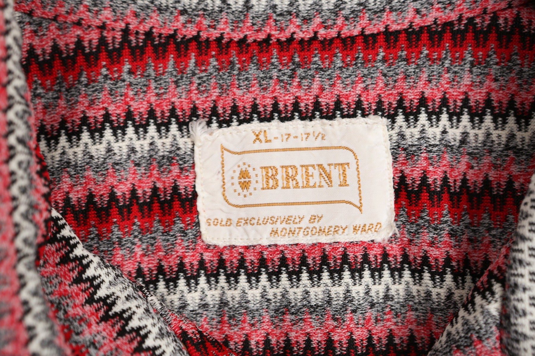 70's Men Red Striped Poly Disco Shirt - Long Sleeve