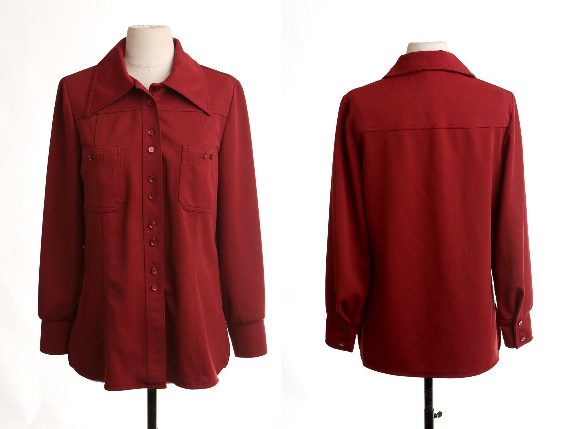 70's red disco women top blouse summer casual studio 54 butterfly neck hippie