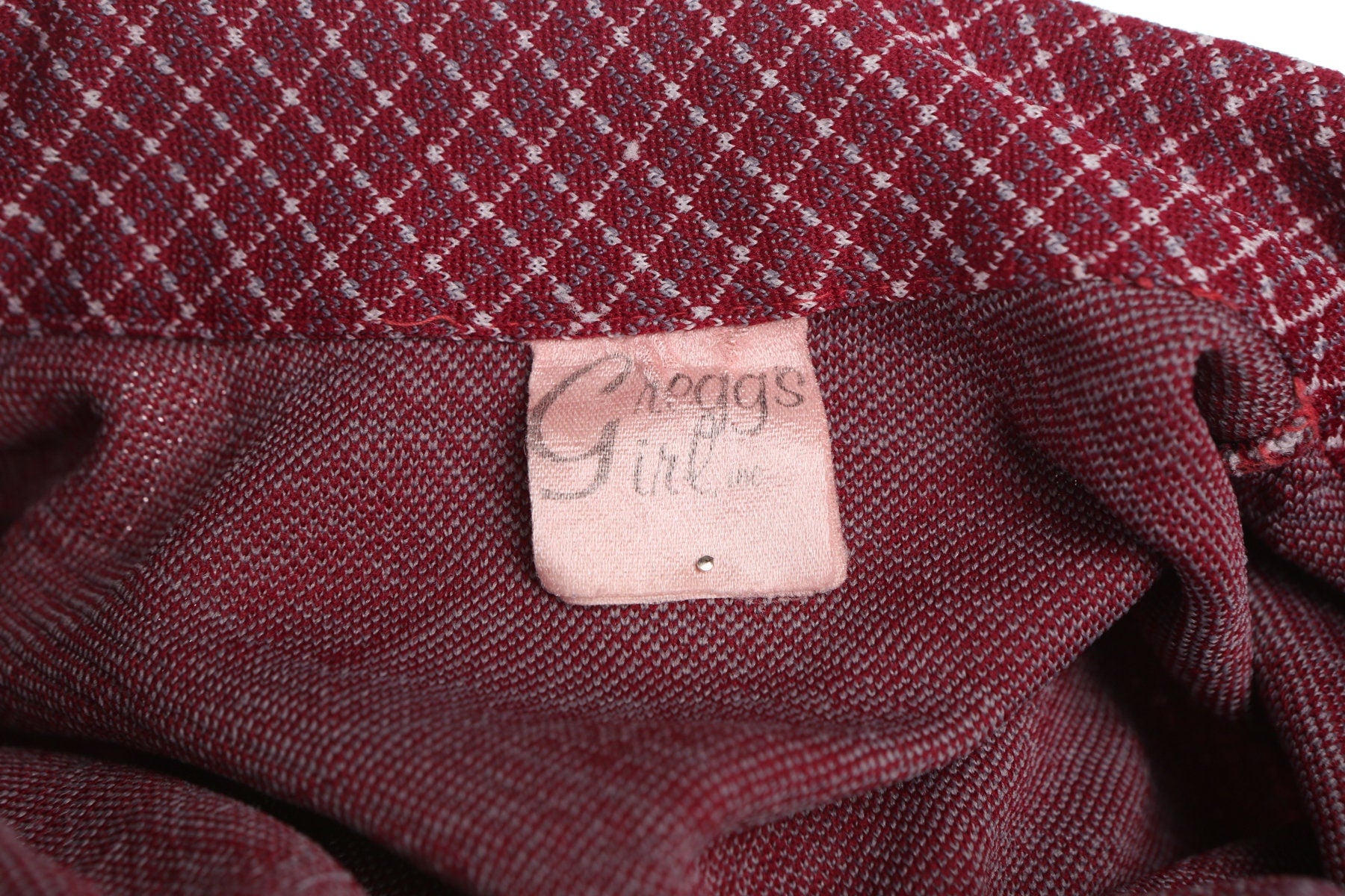 70's Red Poly Top - Butterfly Neck - Geometric Print