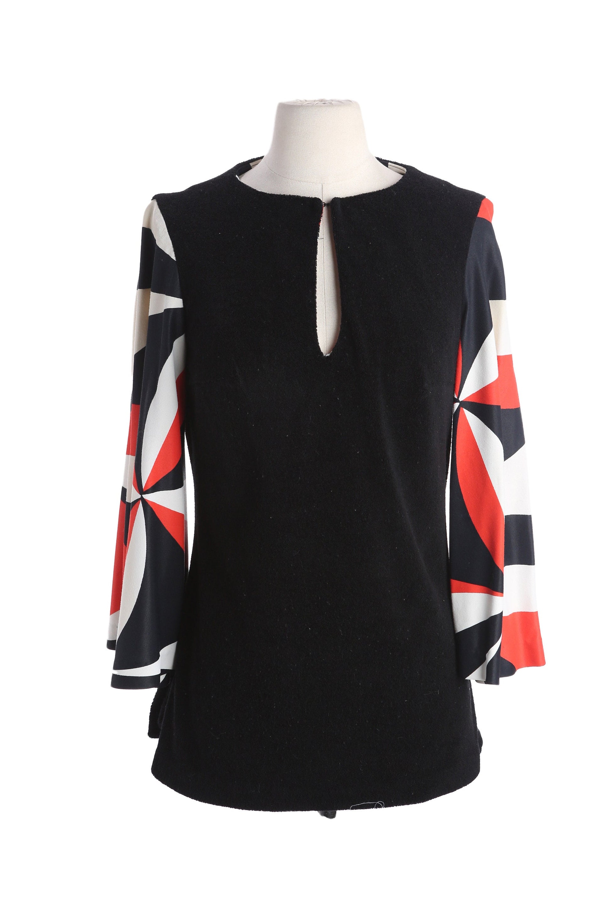70s Women Black Long Sleeve Mod Dress by Elizabeth Stewart for Six to Twelve