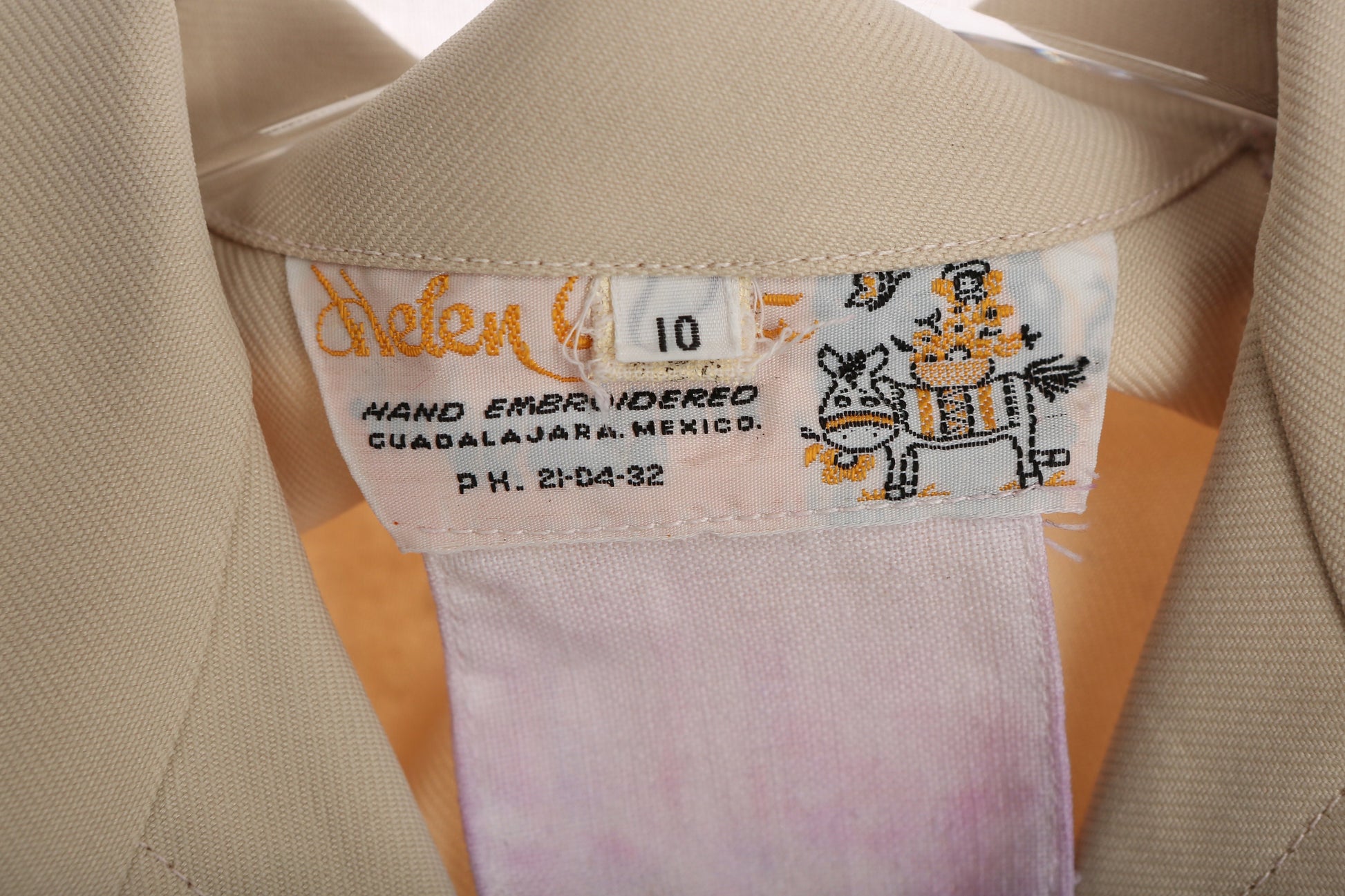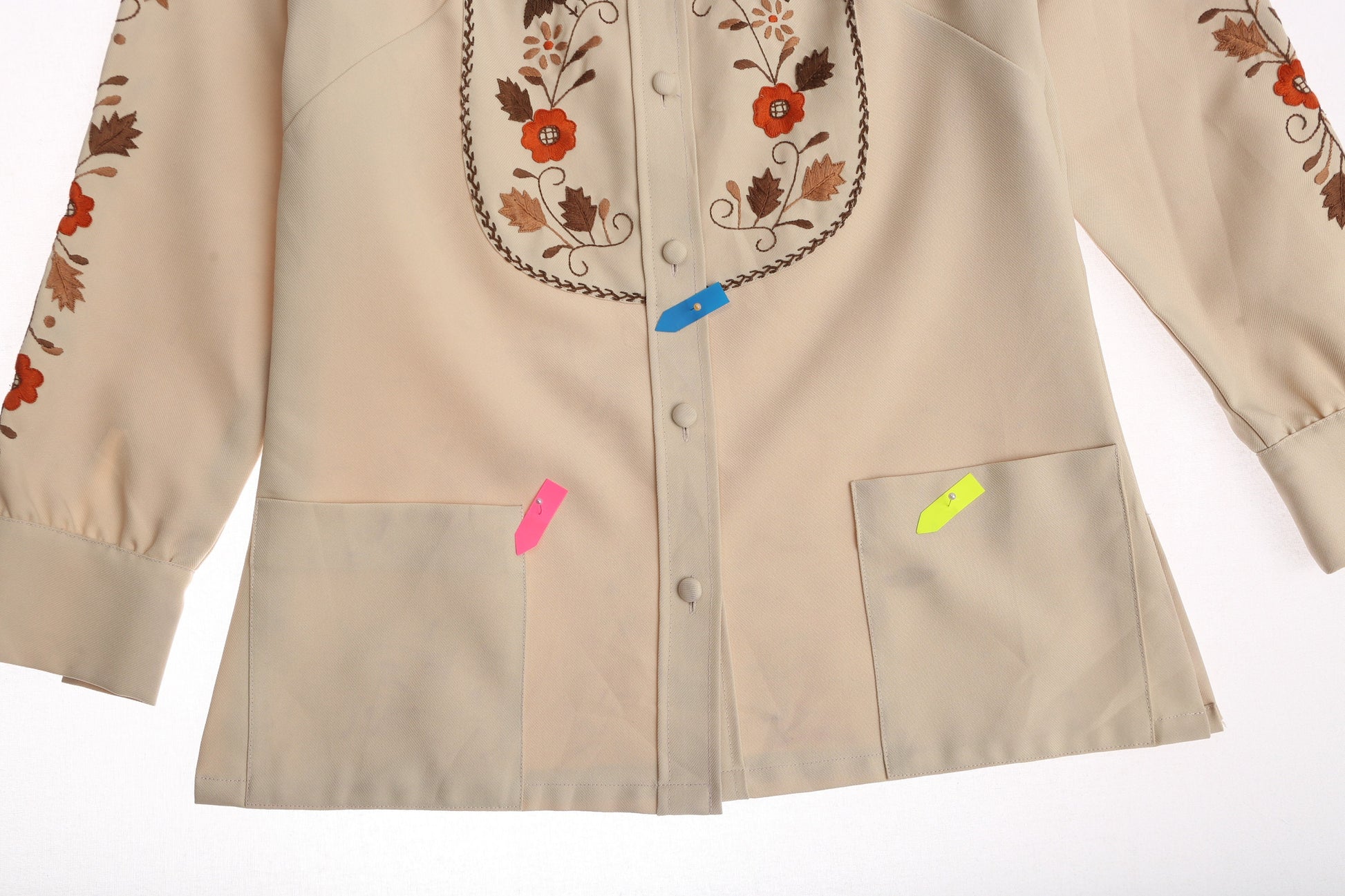 70s Women Mod Poly Bouse with Embroidered Floral Designs