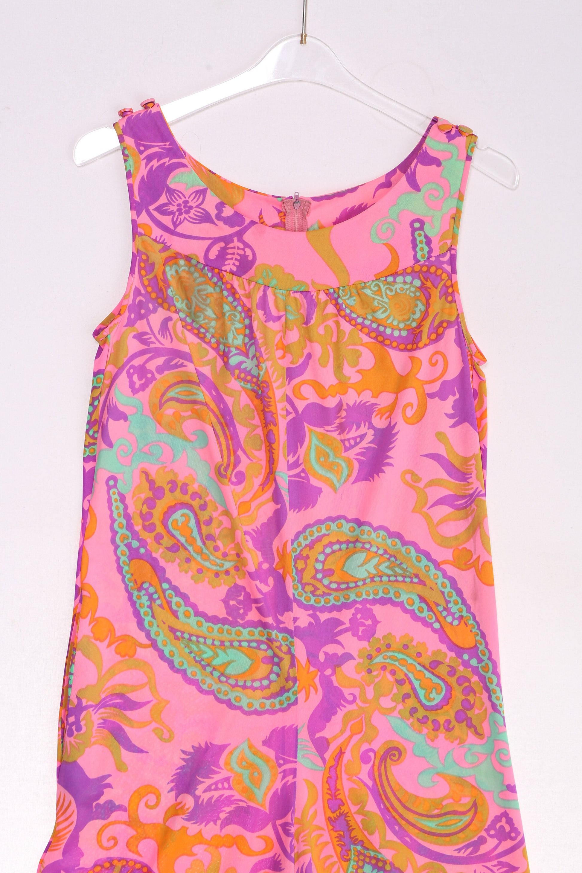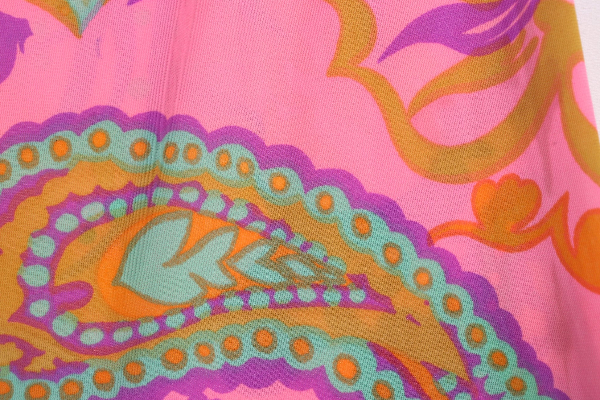 70S Women Pink Paisley Polyester Jumpsuit