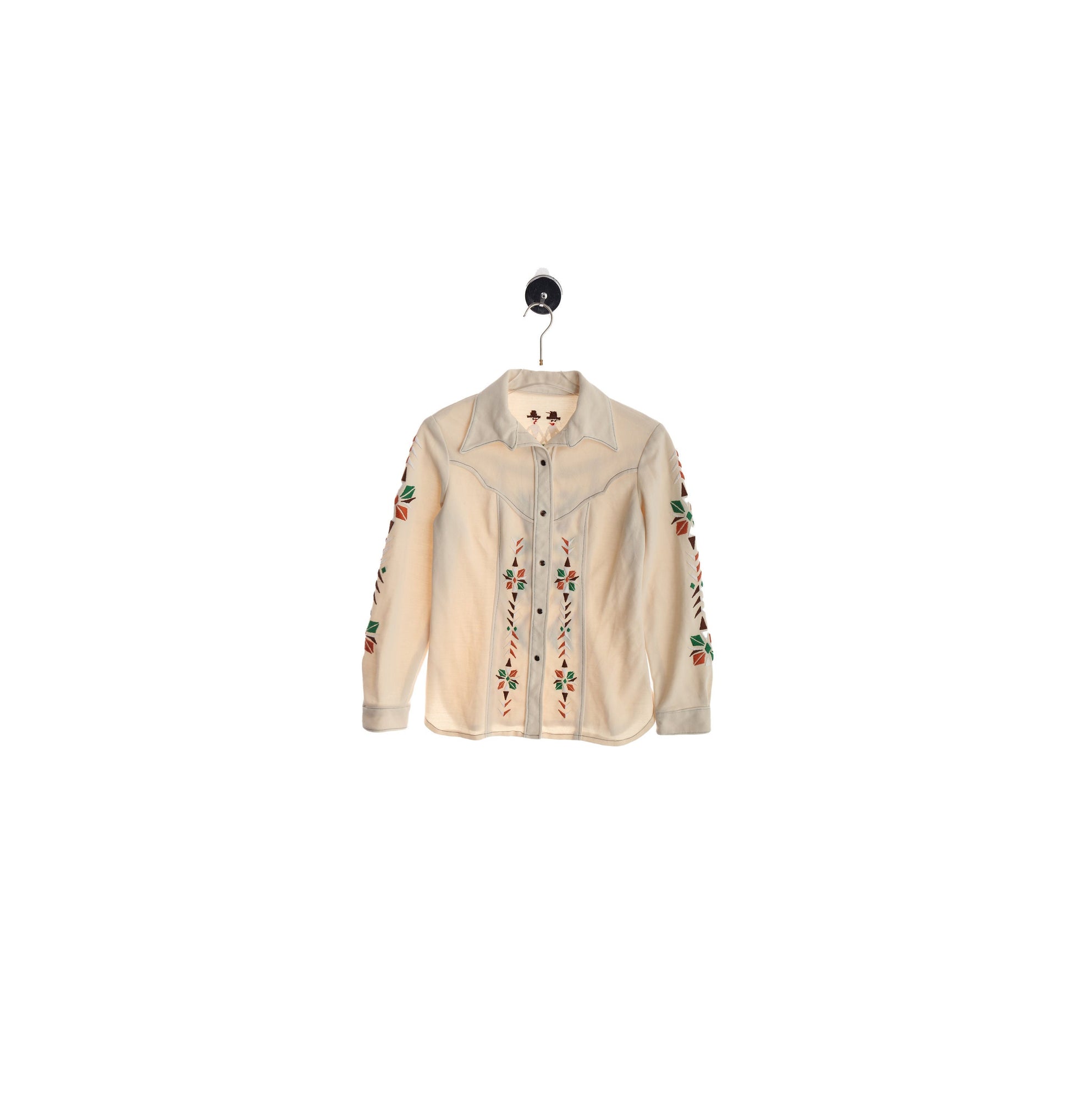 70s Women Poly Top with Embroidered Details