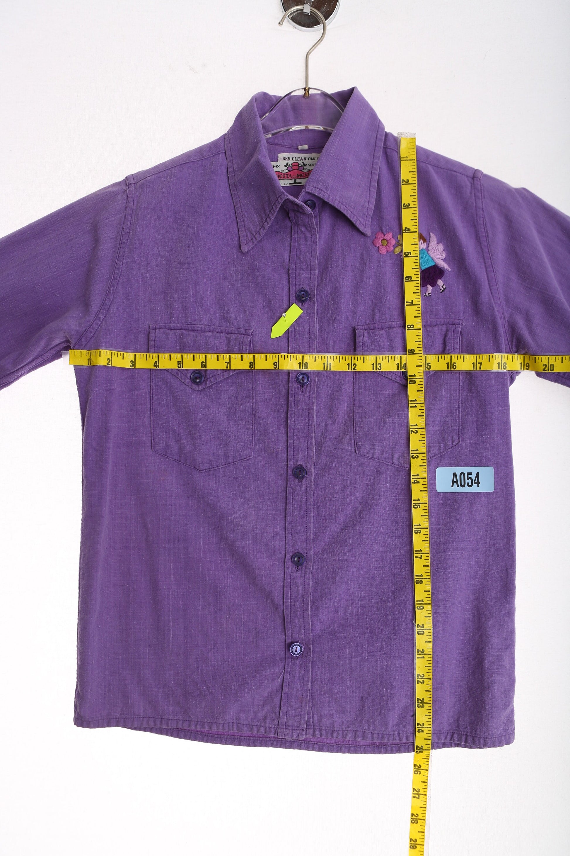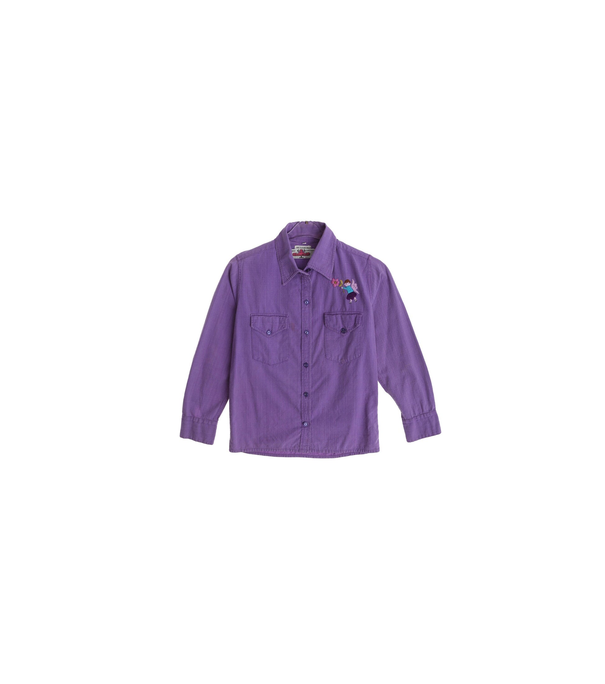 70s Women Purple Cotton Top with Embroidered Details