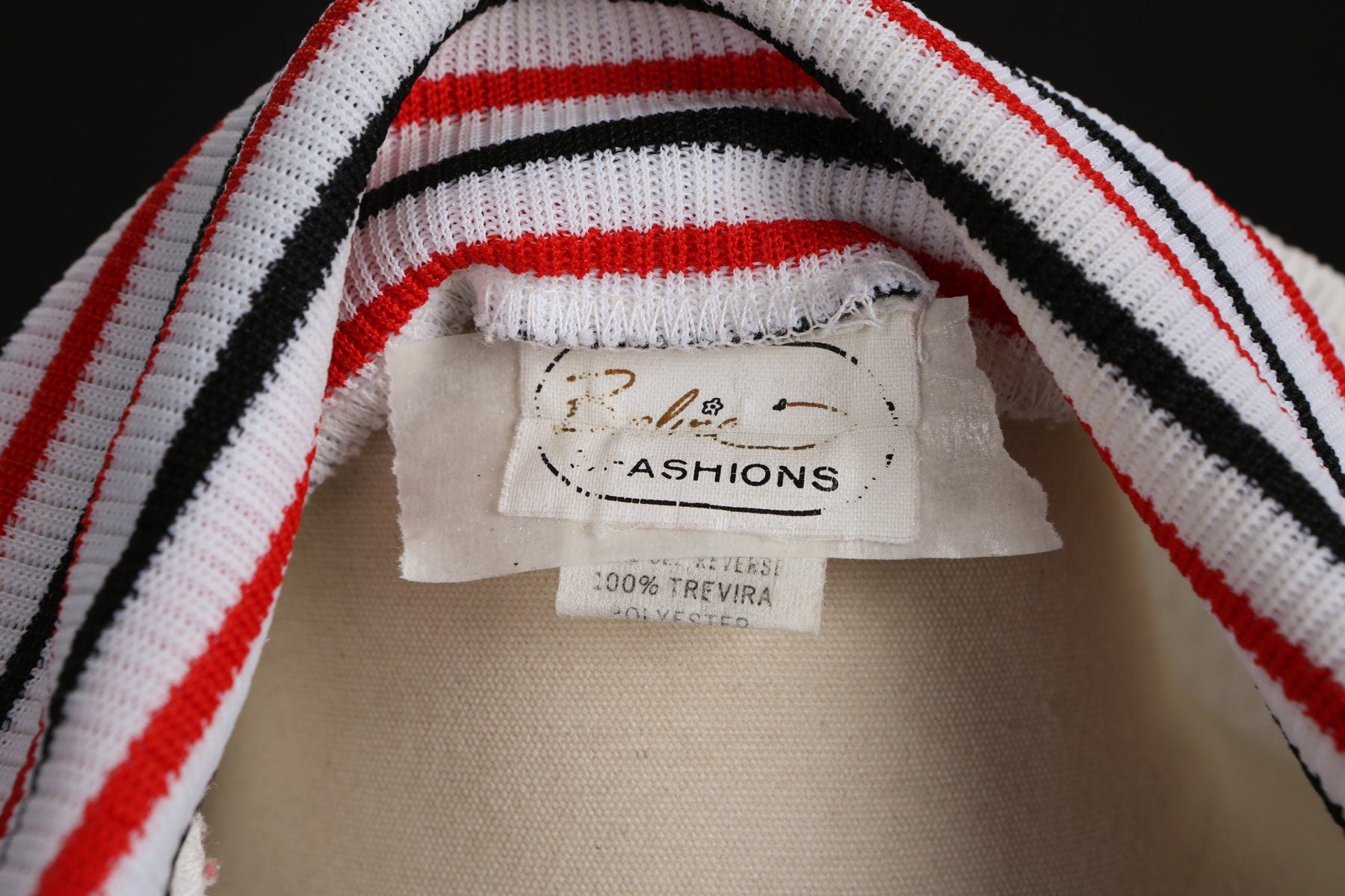 70's Women White Collared Striped Seam Button Up Long Sleeve Mod Top