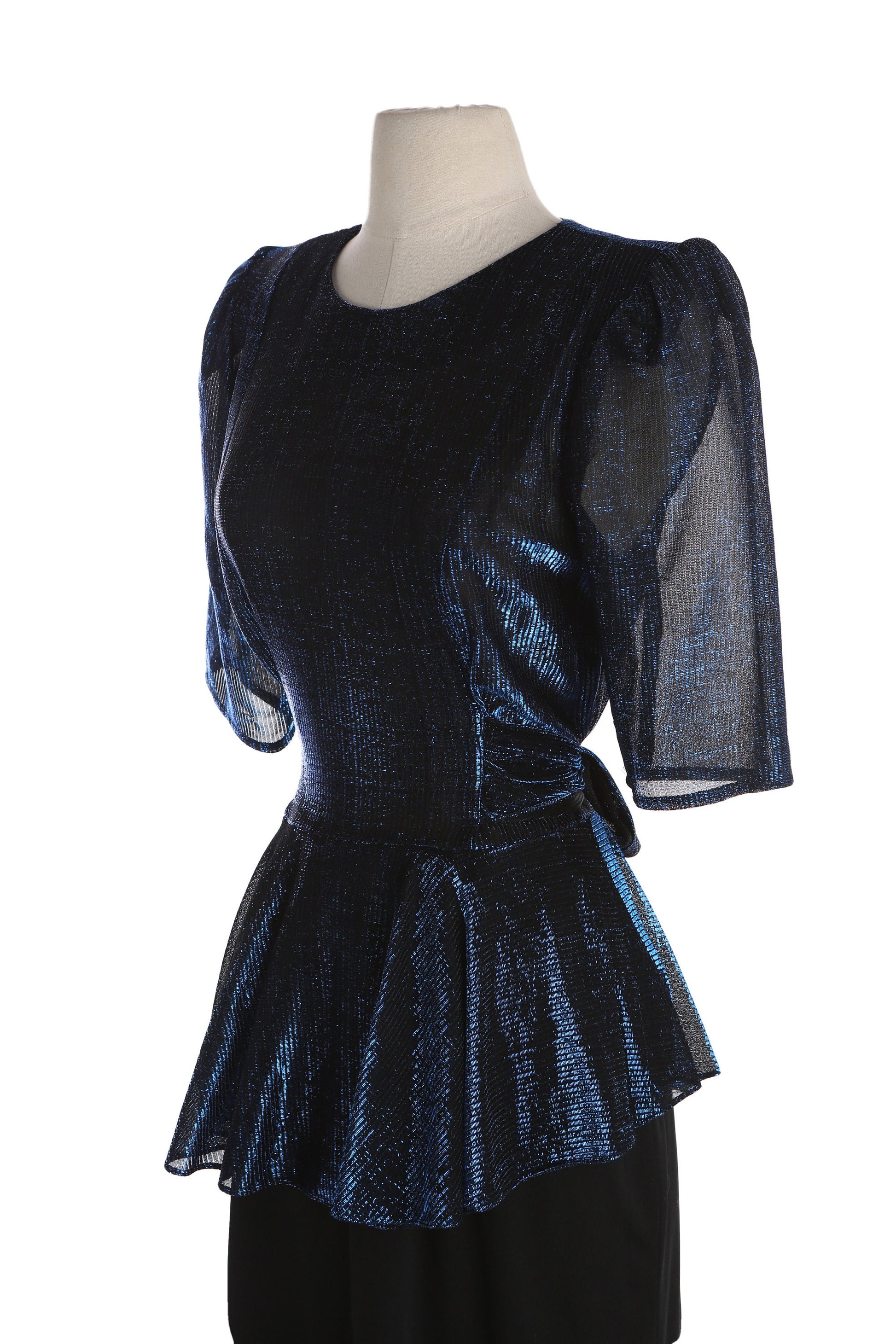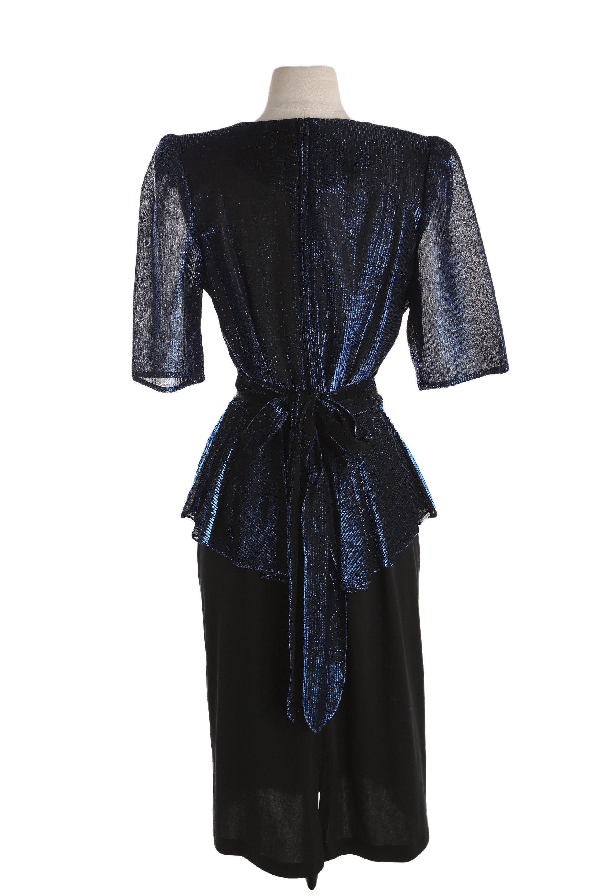 80s Women Black Evening Dress with Waist Belt Adjuster