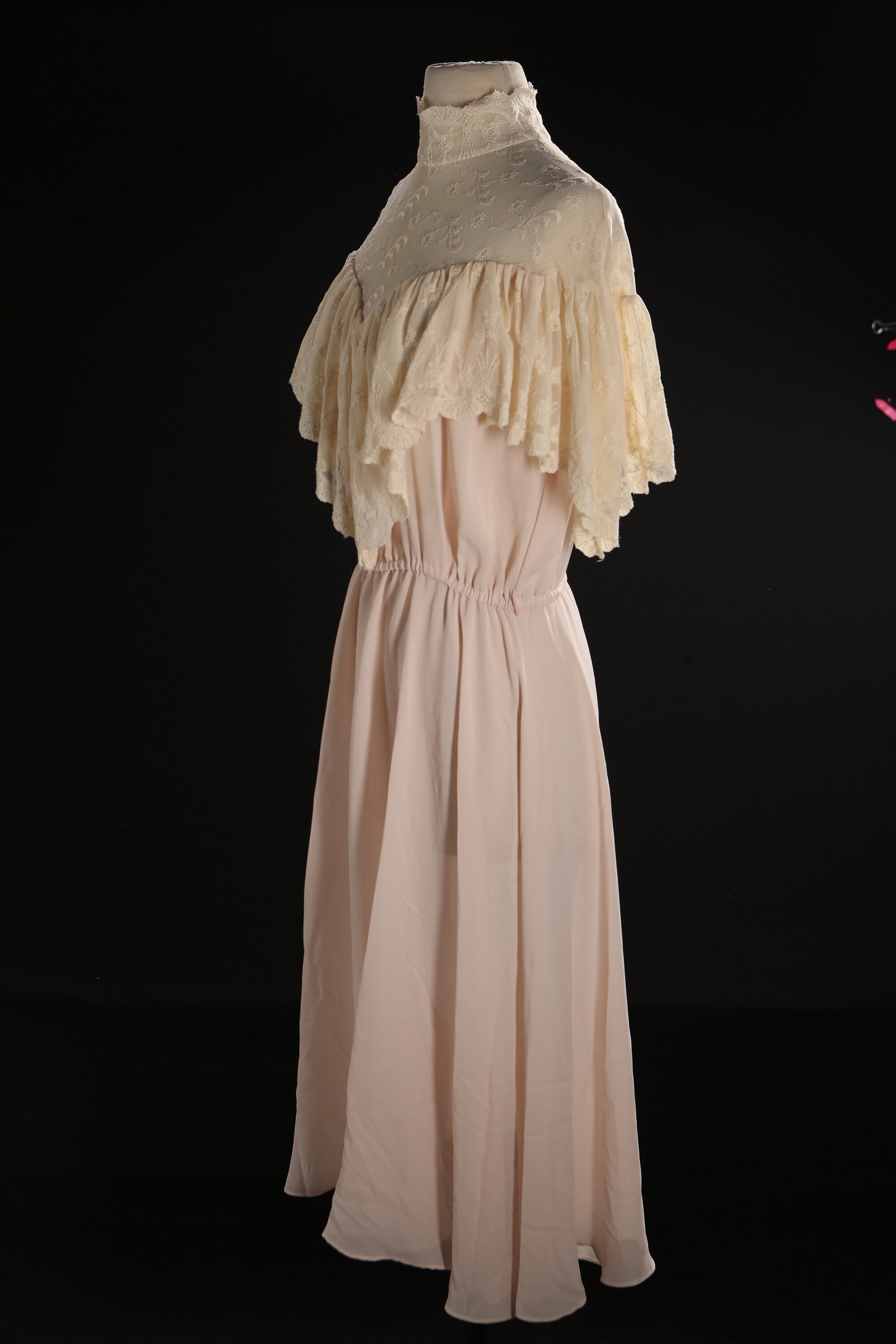 80s Women Pink Poly Prairie Short Sleeve Casual Dress by Miss Ashely of California