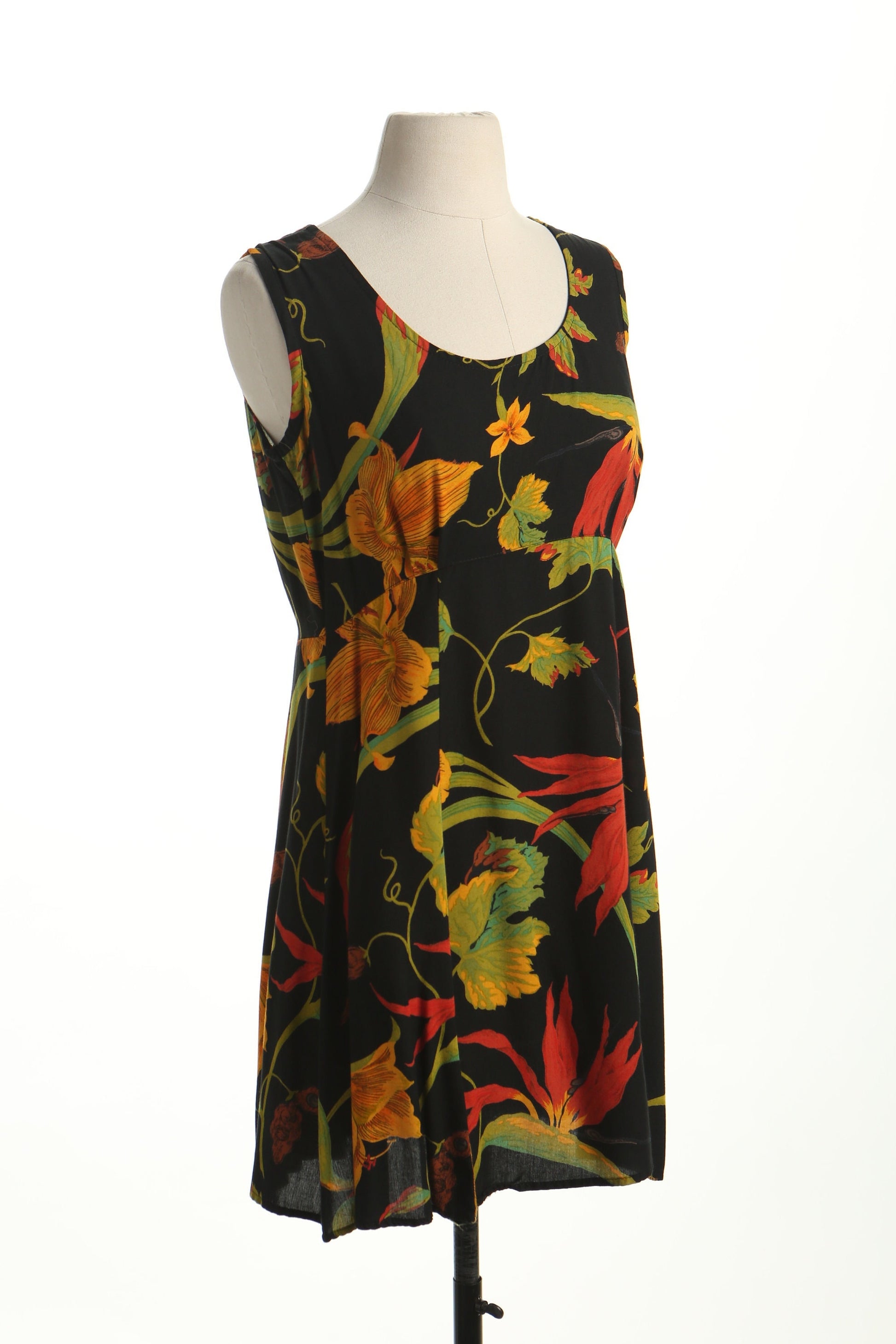 90's hawaiian summer dress women plant print dressing clio casual black green yellow