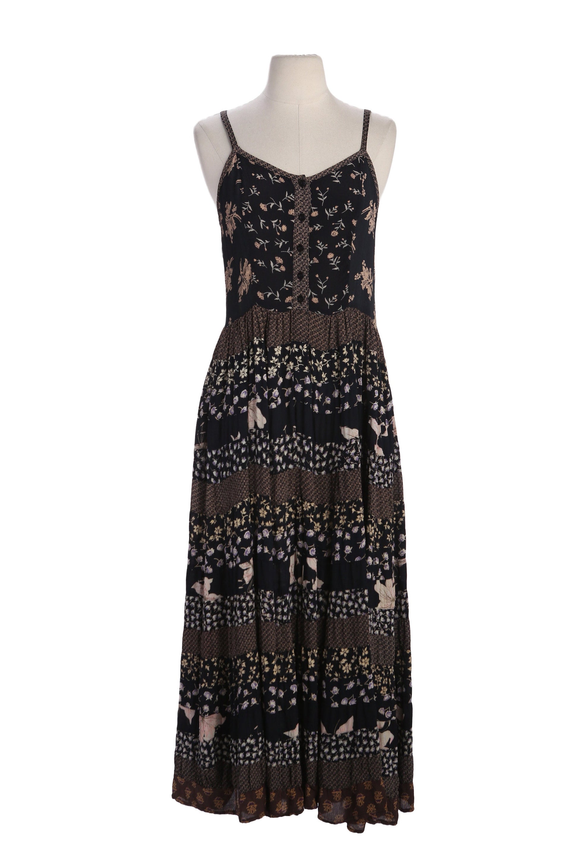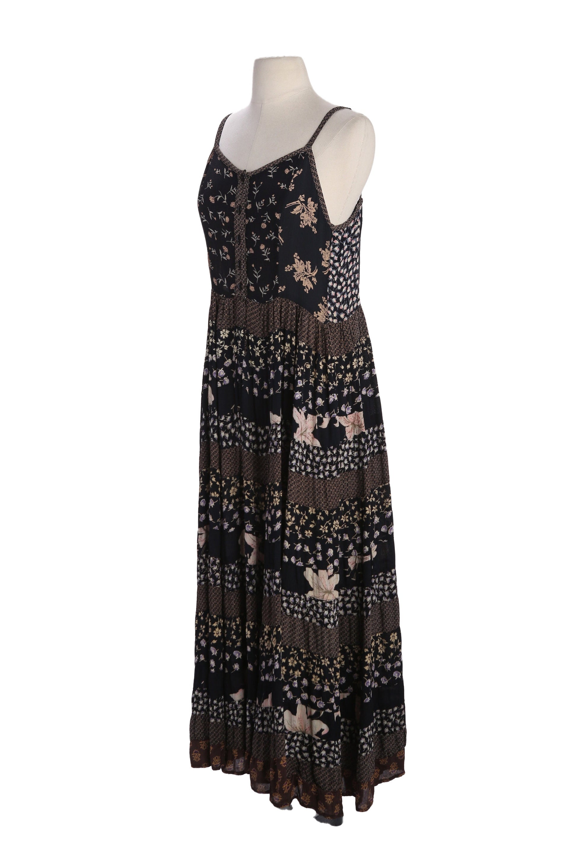 90s Women Black Floral Print Sleeveless Maxi Summer Rayon Dress - Made in India by Her Style