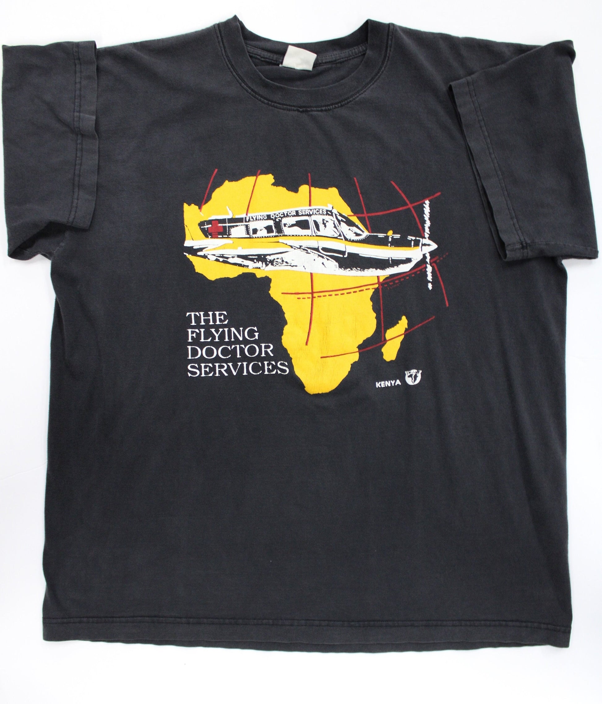 African kenya missionary vintage t-shirt ariplane doctor graphic black yellow rare services