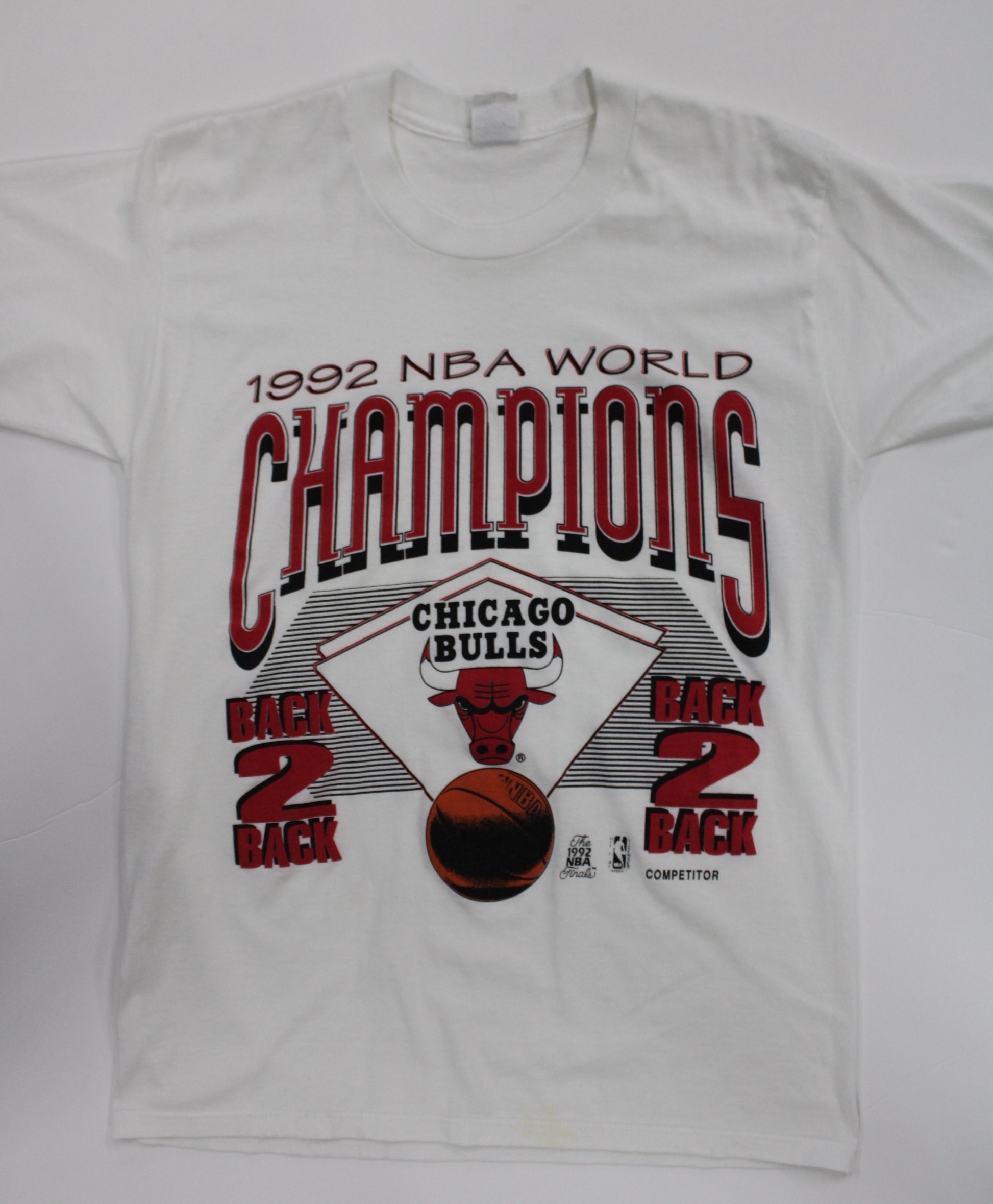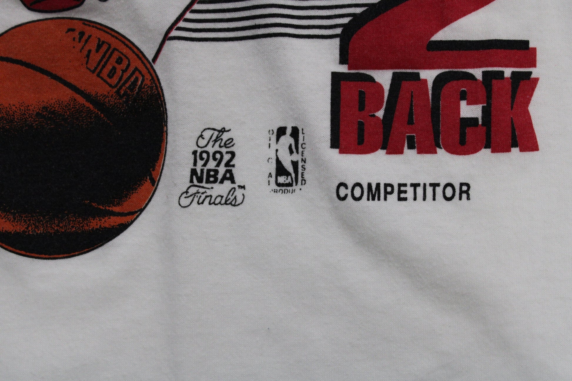 Back 2 back 1992 nba champions chicago bulls world champions vintage t-shirt 1992 nba finals white rare competitor label
