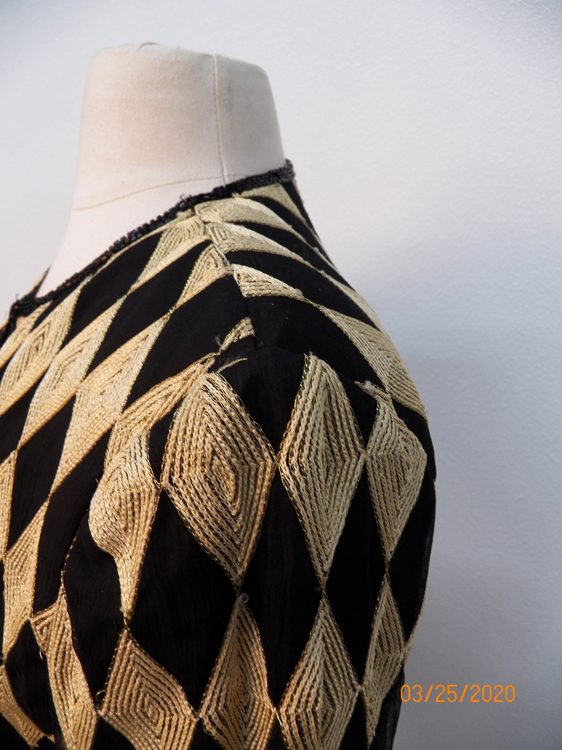 Black gold 80's casual jacket embroidered metallic 90's women