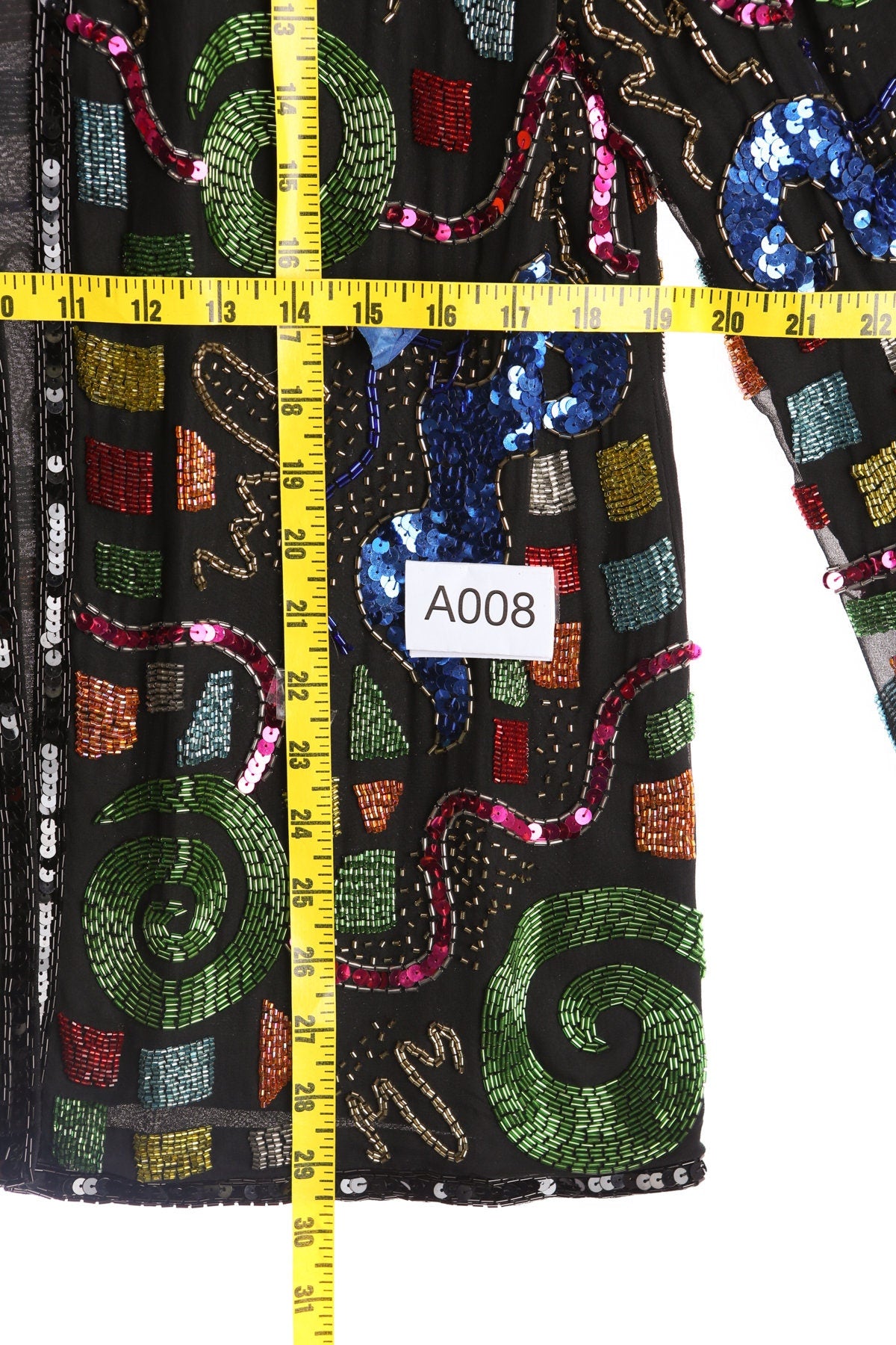 Black Sequin Geometric Shapes Women Silk Top - Era 90's - Y2K by Morgan Taylor