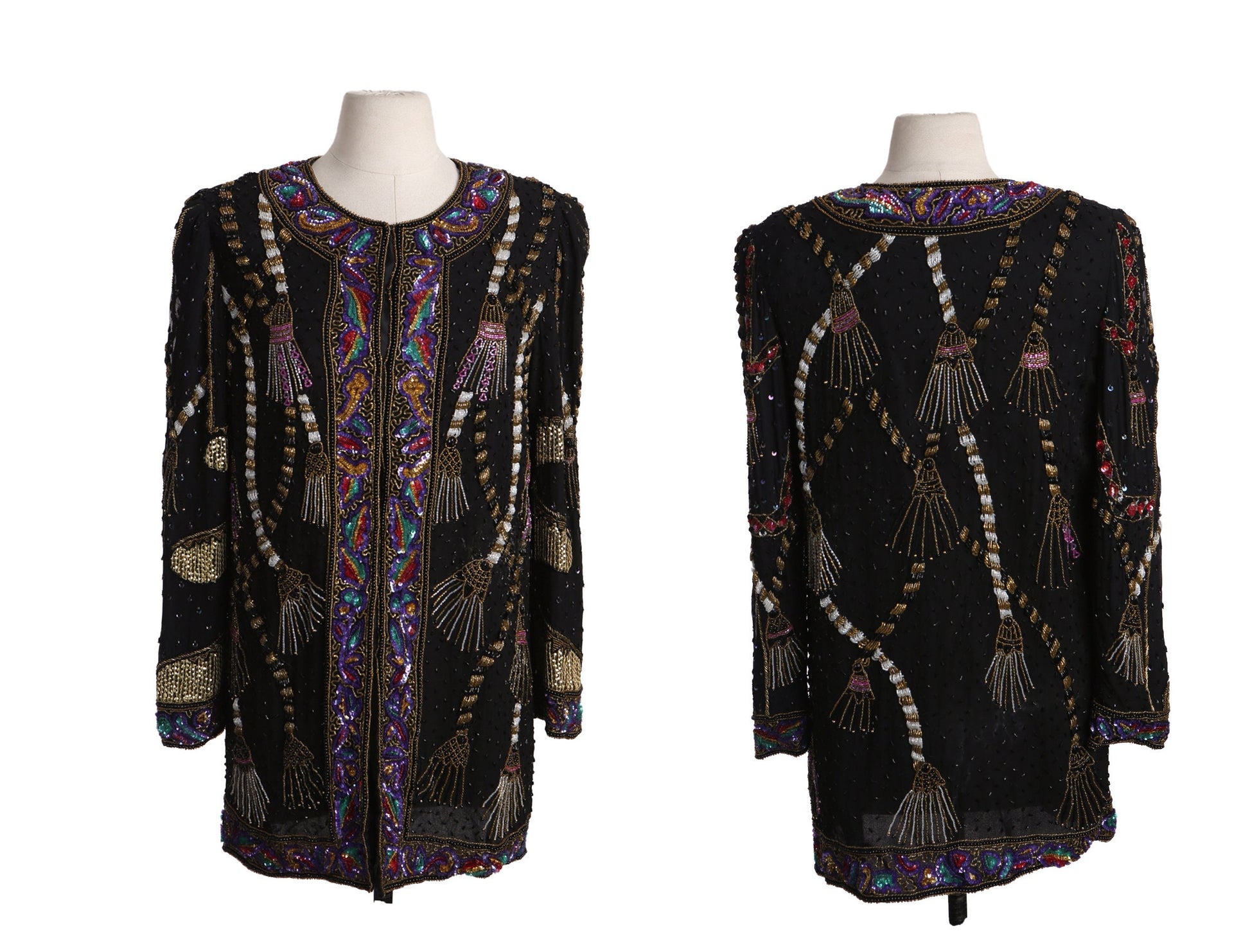 Black Sequin jacket with sequin Tassels Designs by Laurence Kazar - Era 80s - 90s