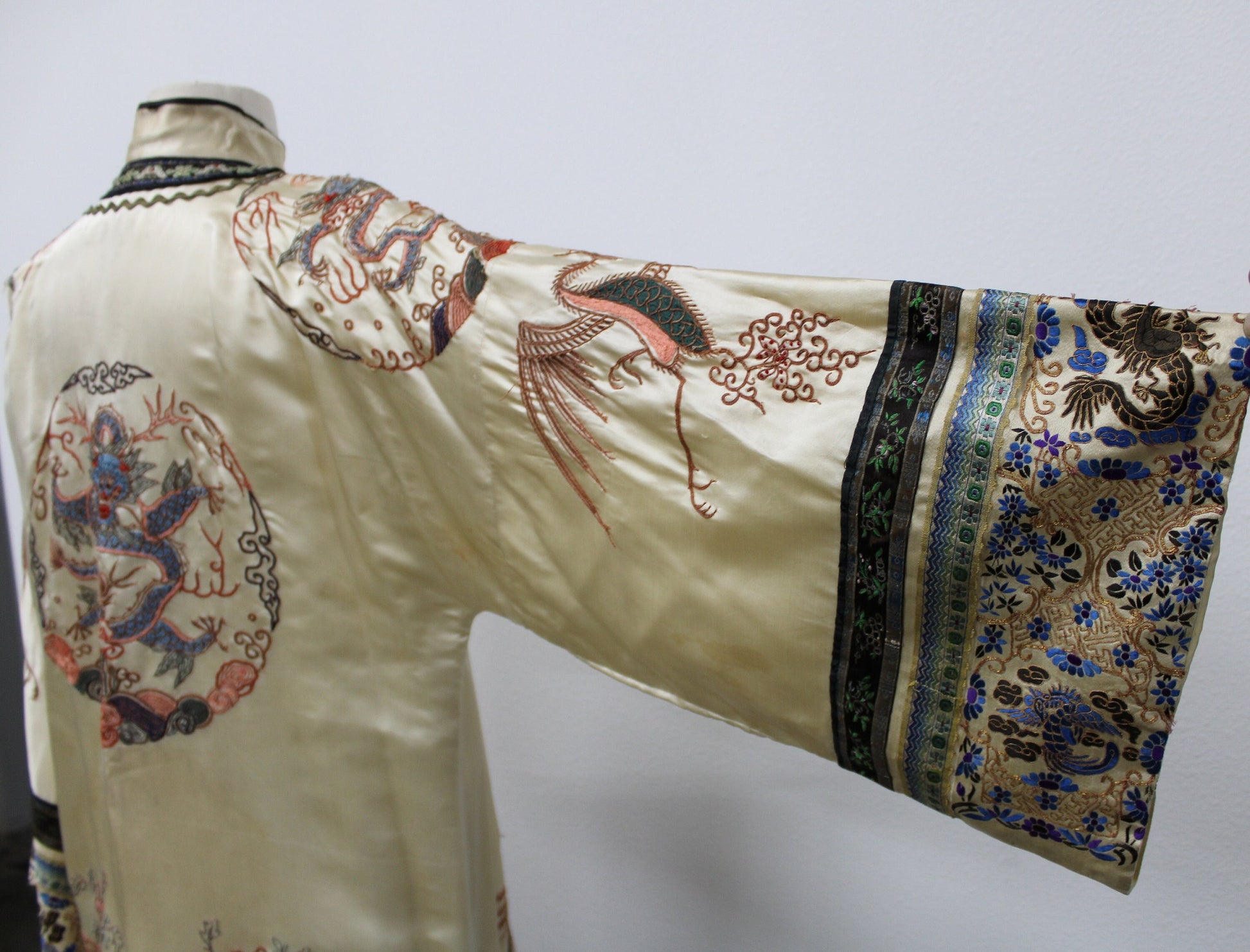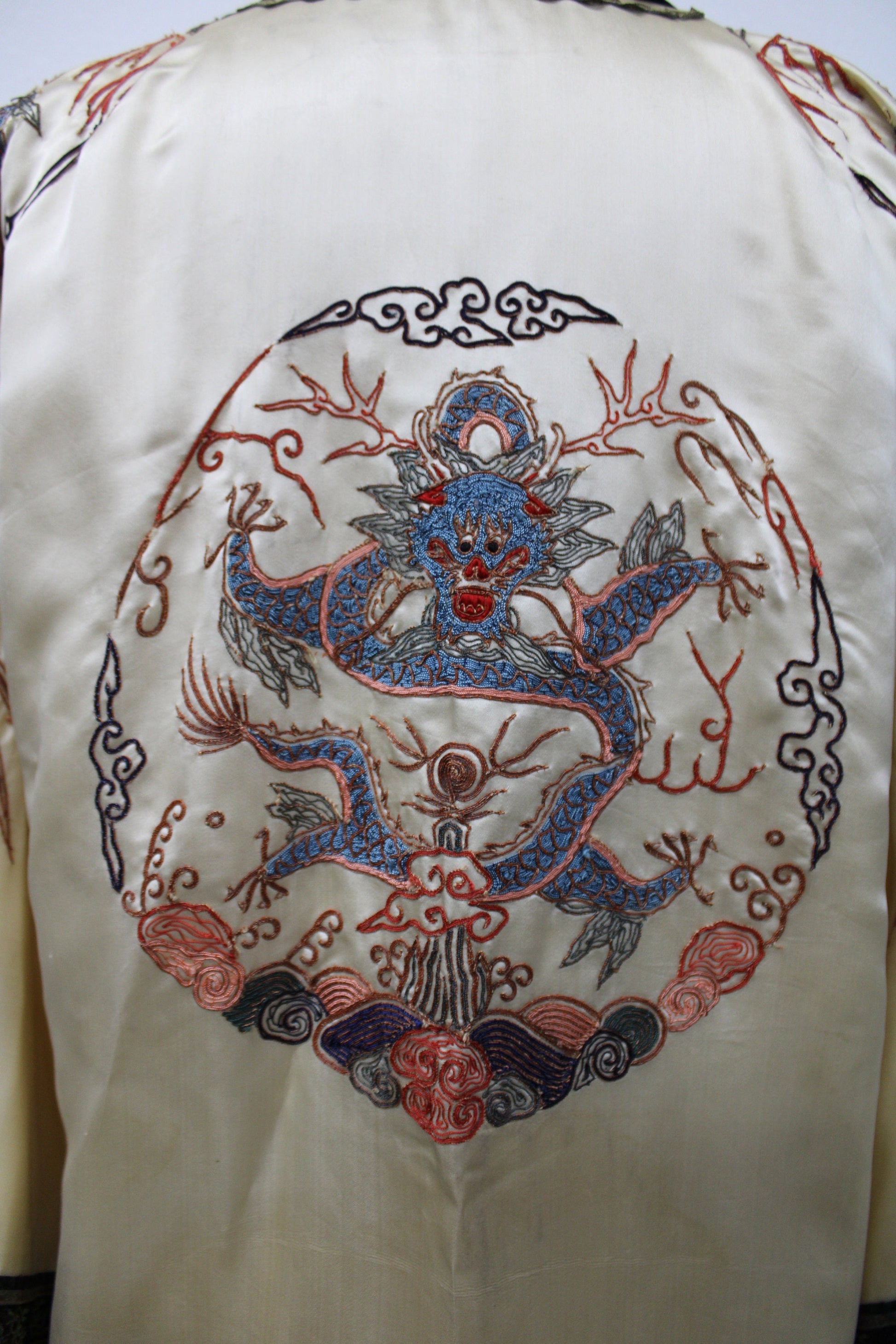 Chinese embroidered robe dragon cheongsam coat vintage rare women satin antique