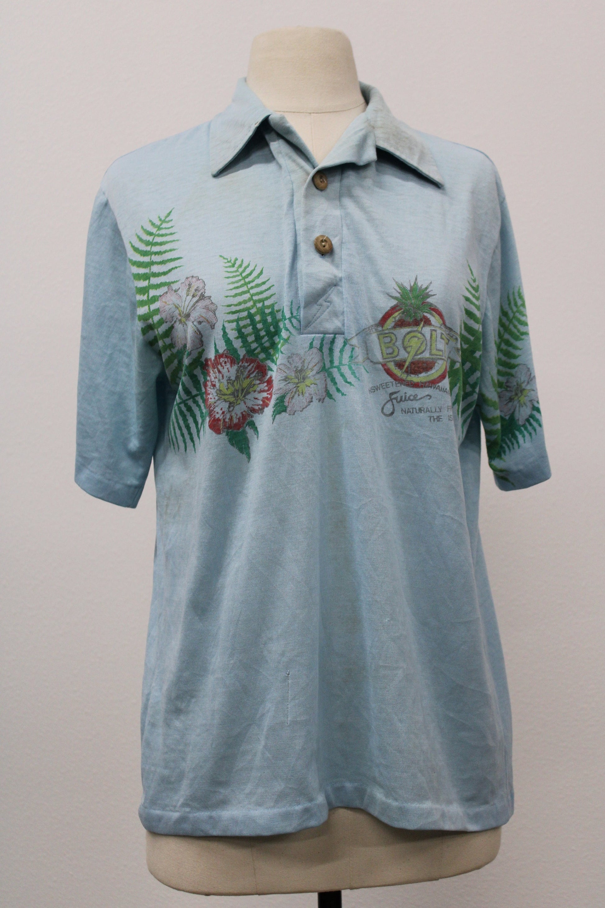 Hawaiian shirt vintage lighting bolt 70's surfing t-shirt blue wooden buttons
