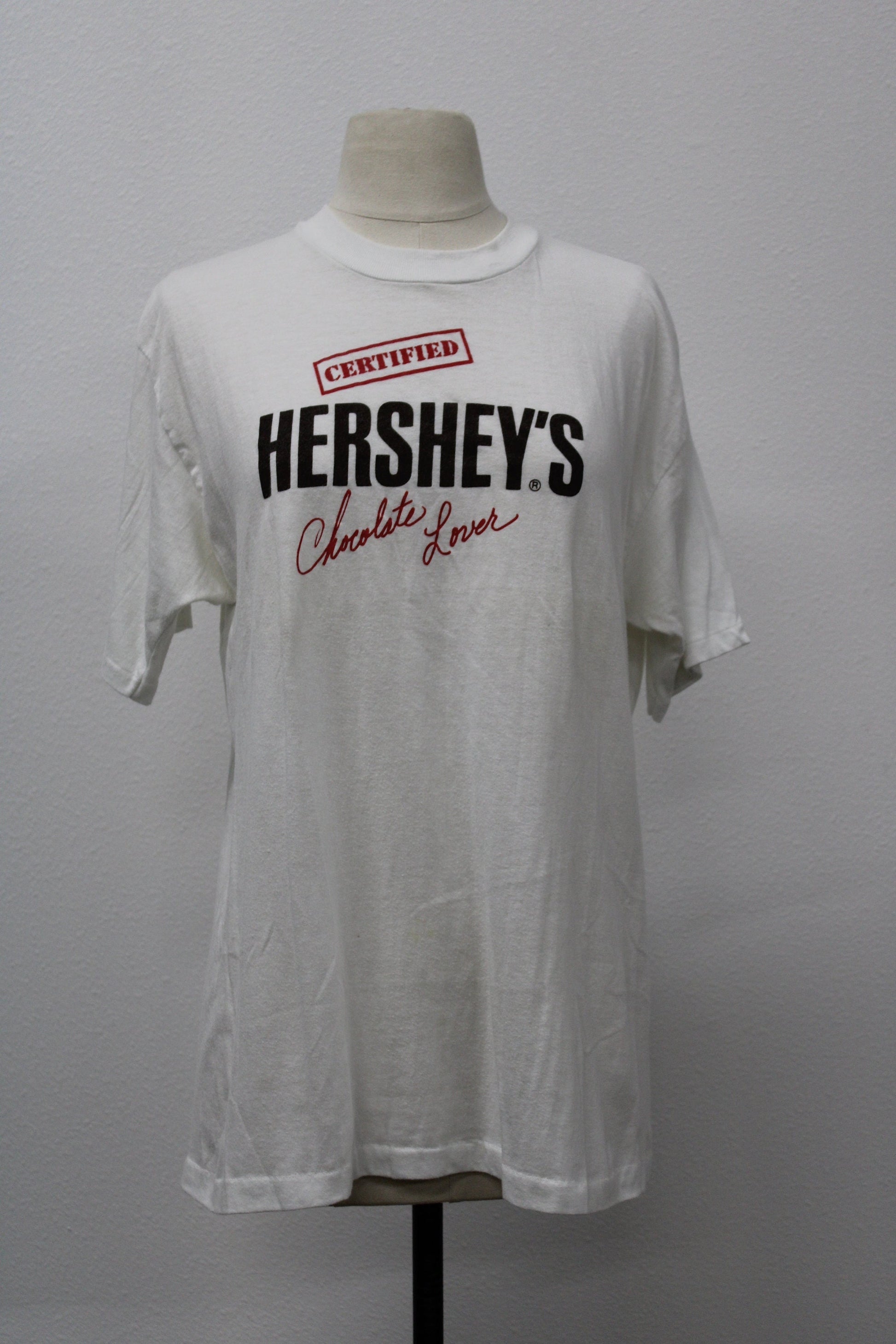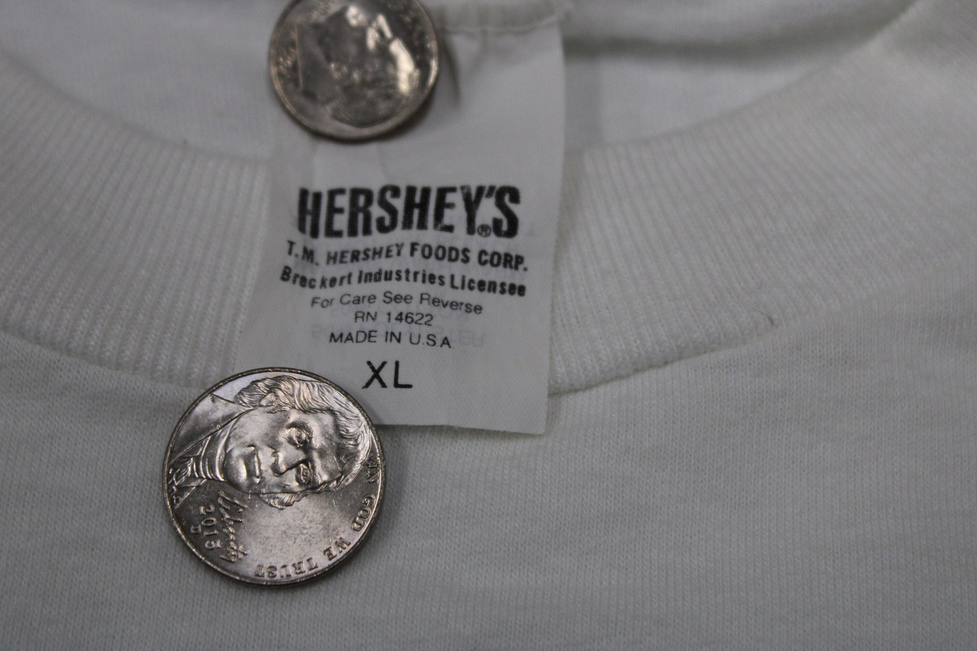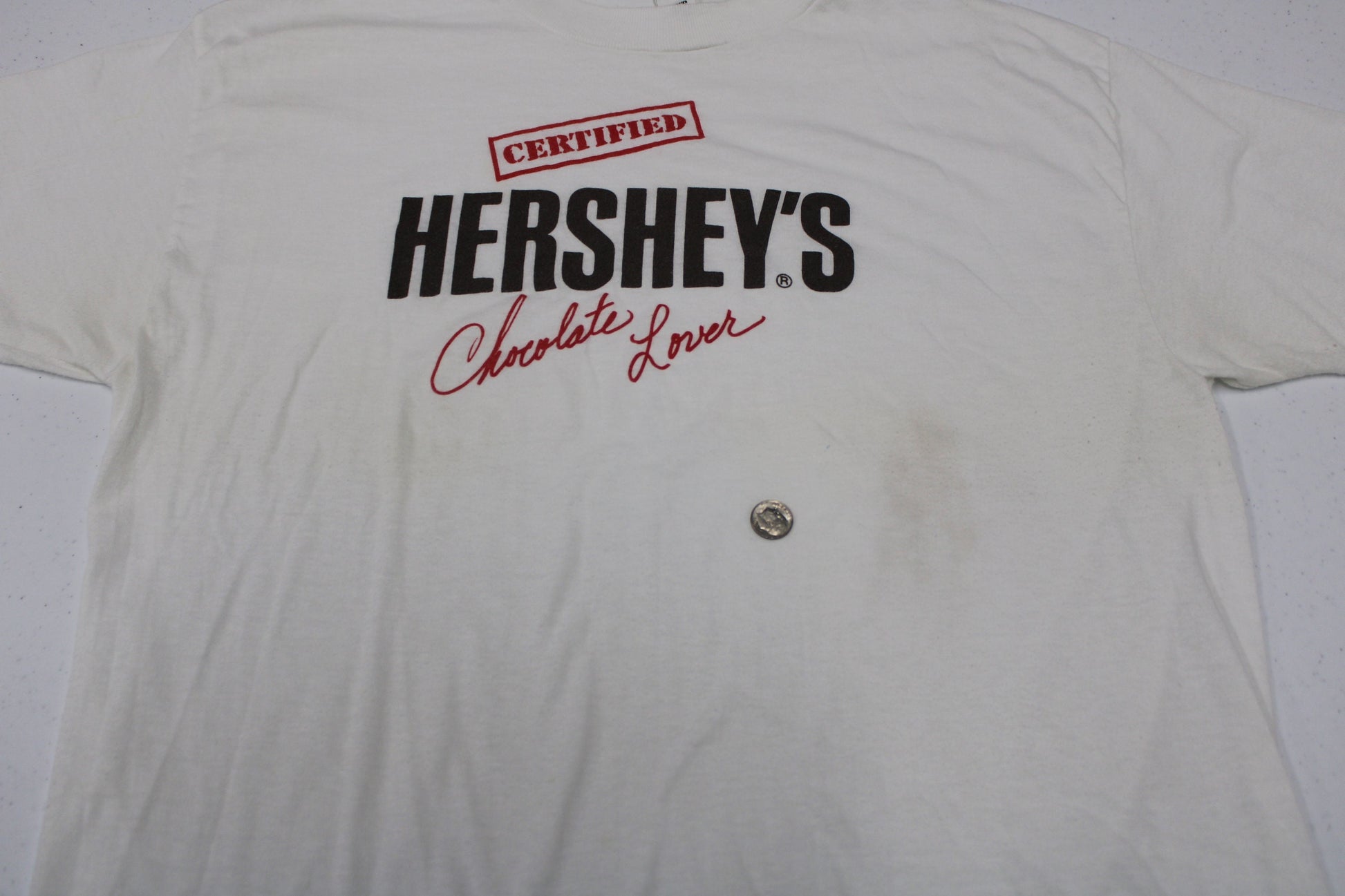 Hershey's vintage white t-shirt chocolate lovers made in usa graphic candy kisses chocolate