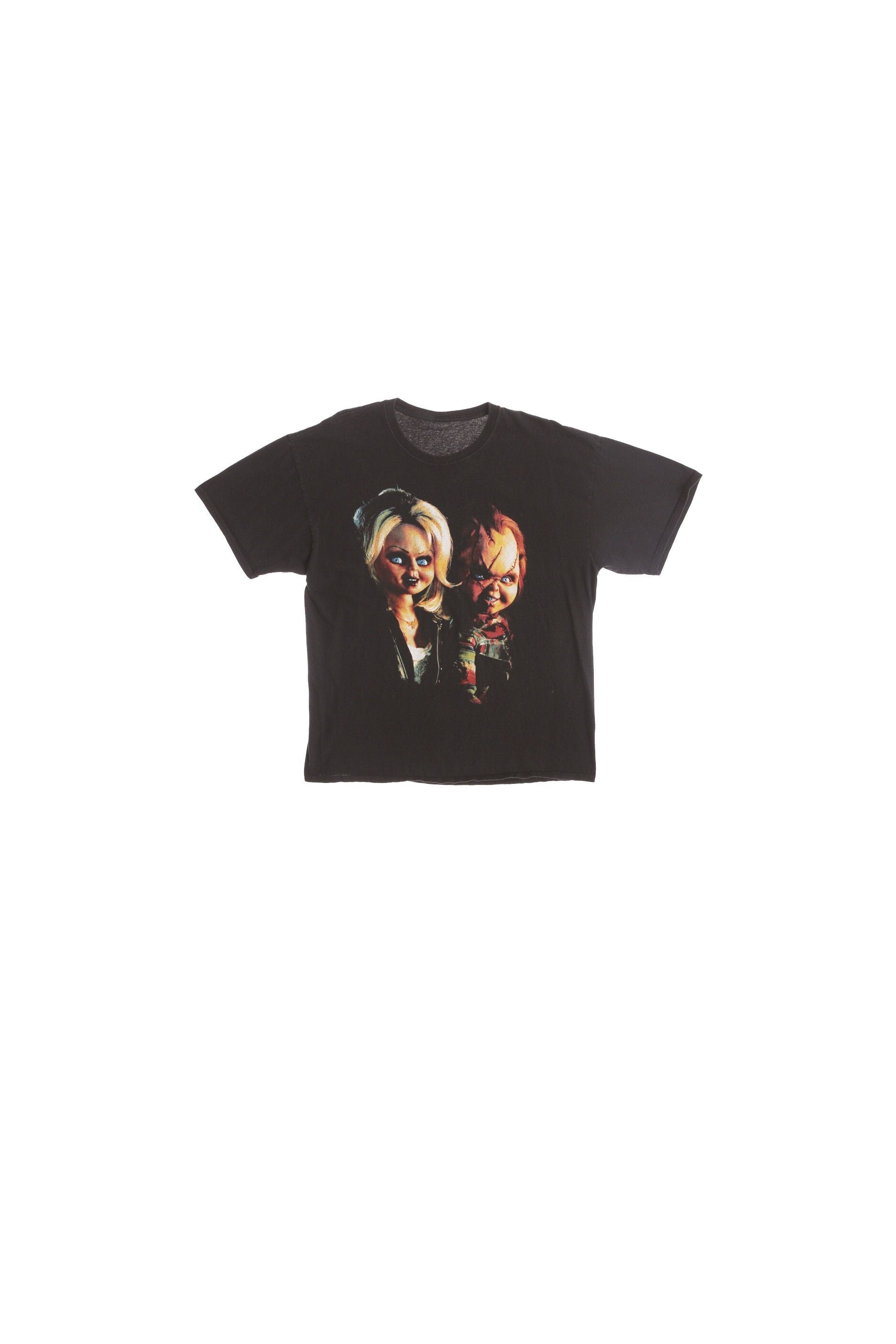 Horror Movie Black Graphic T-shirt - Chucky and Girlfriend Print