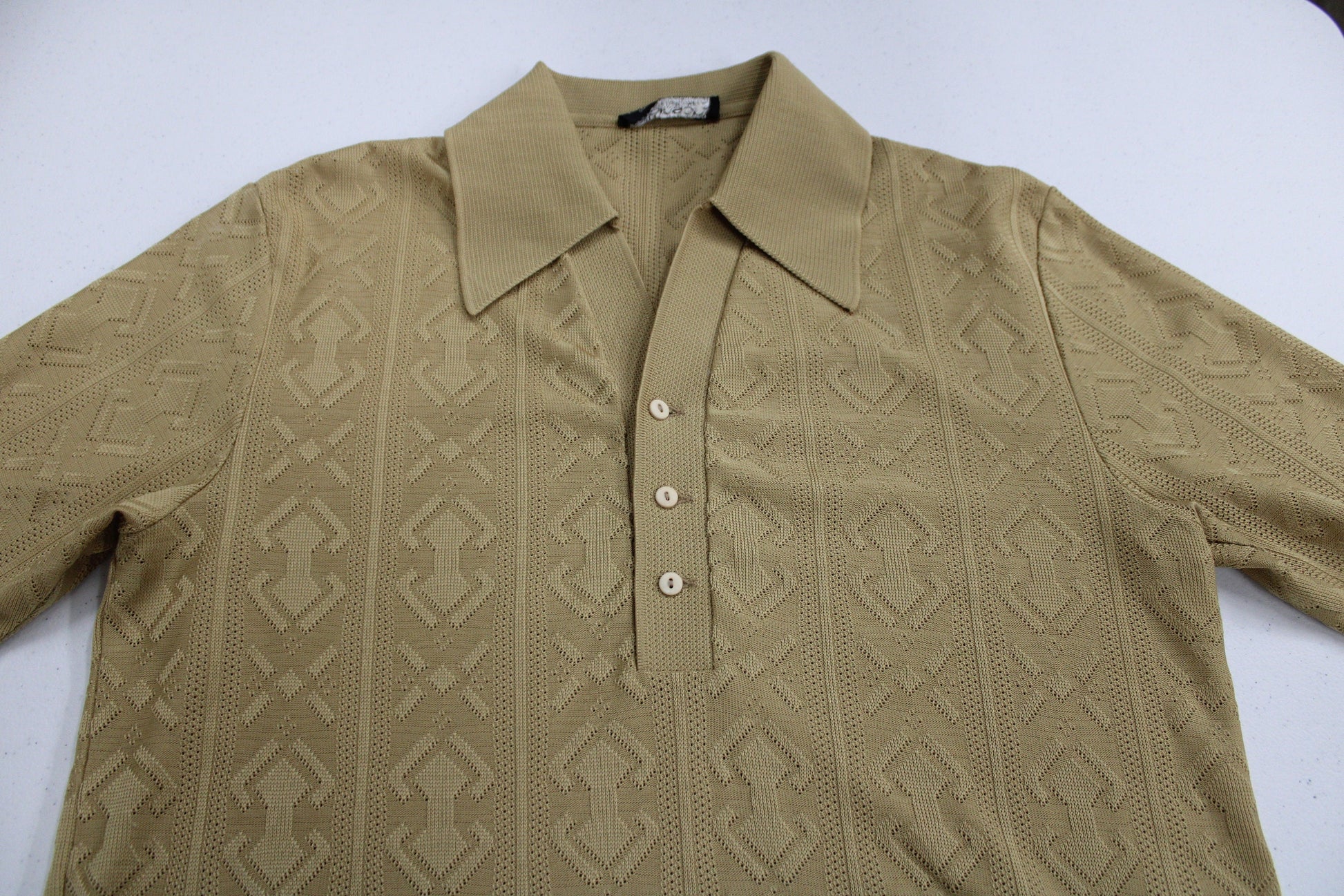Vintage Collared Short Sleeve Polyester Shirt