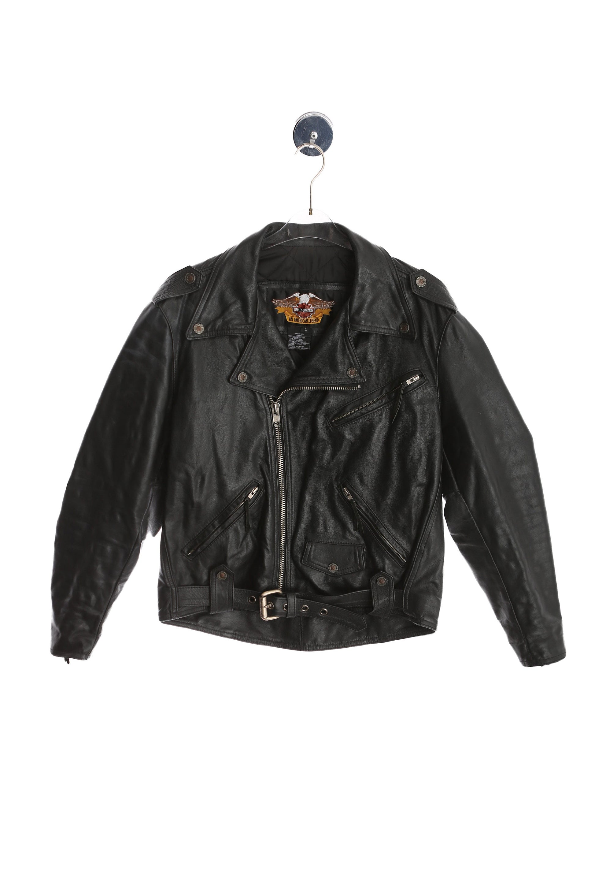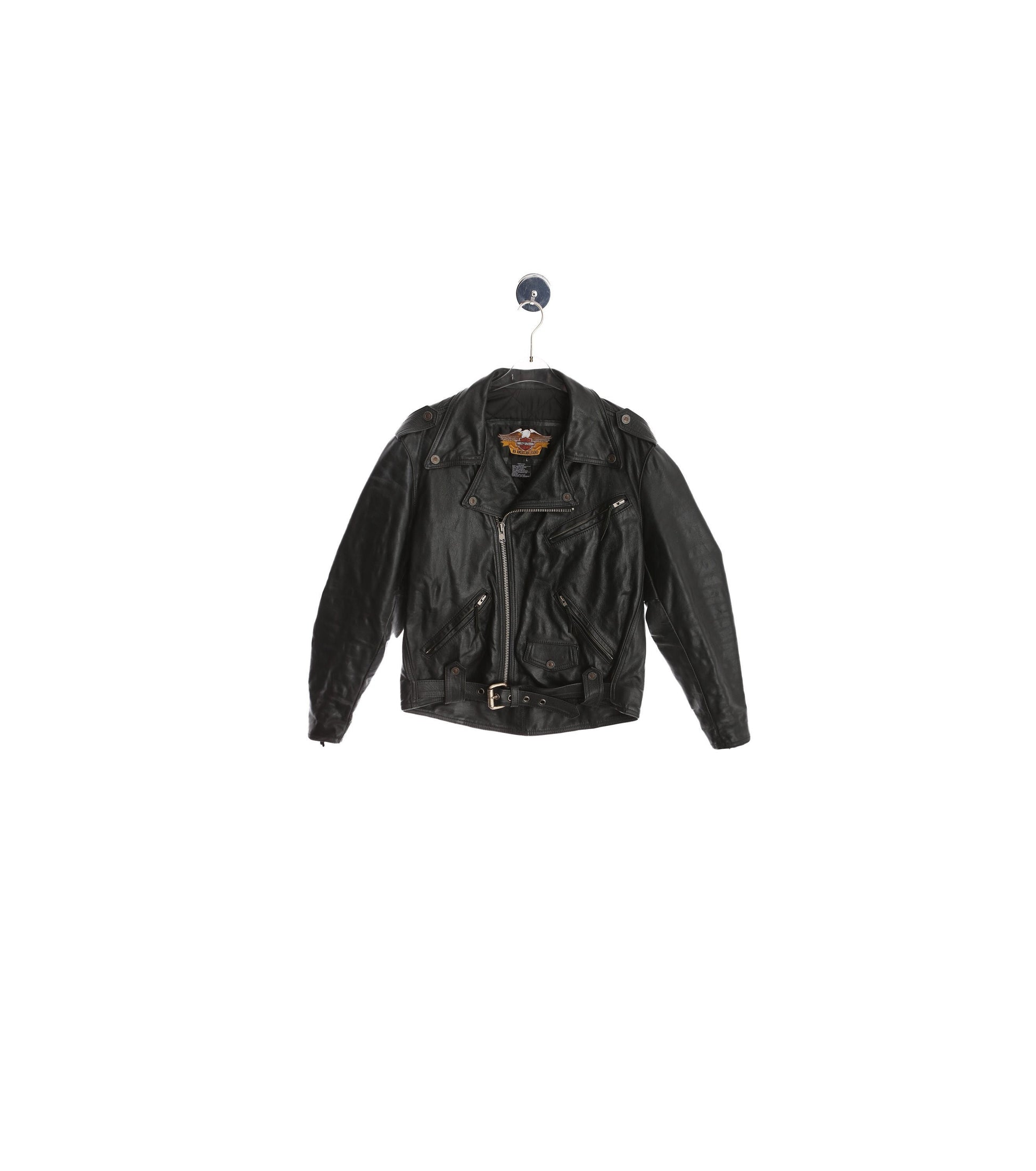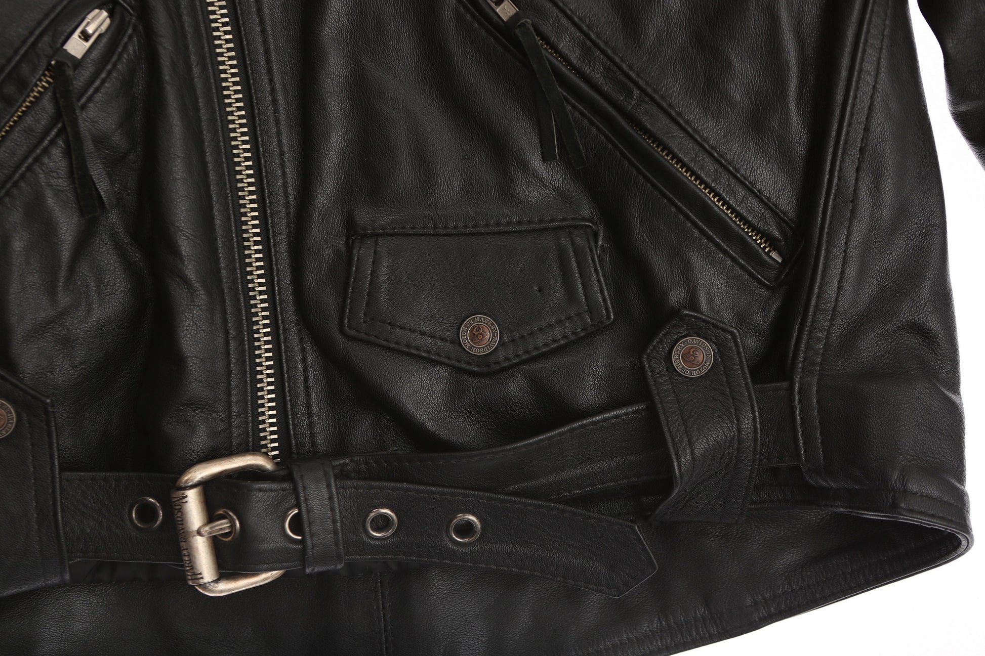 Men's Biker Black Leather Jacket / Size Large / Made in USA