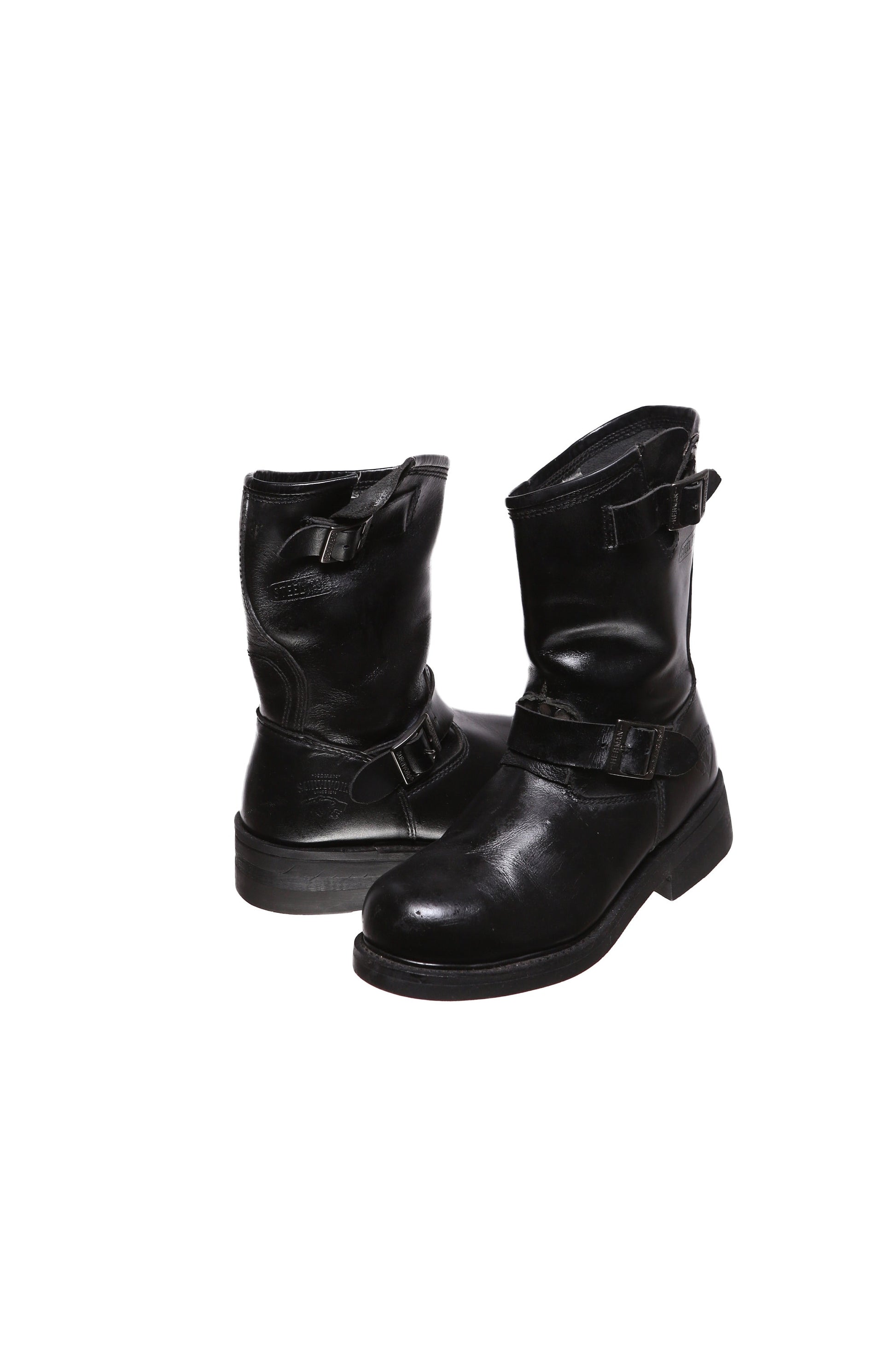 Men's Black Leather Engineering Boots - Size 7 1/2