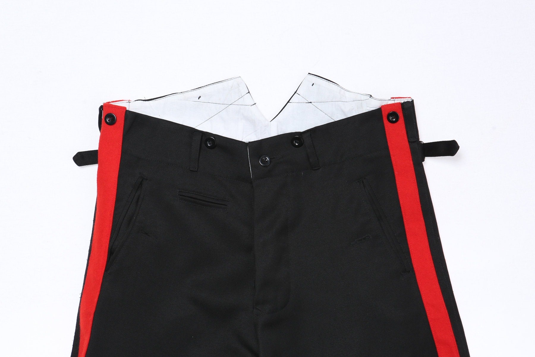 Men's Black Riding Pants with Red Side Lines and Bottom Lace Closure