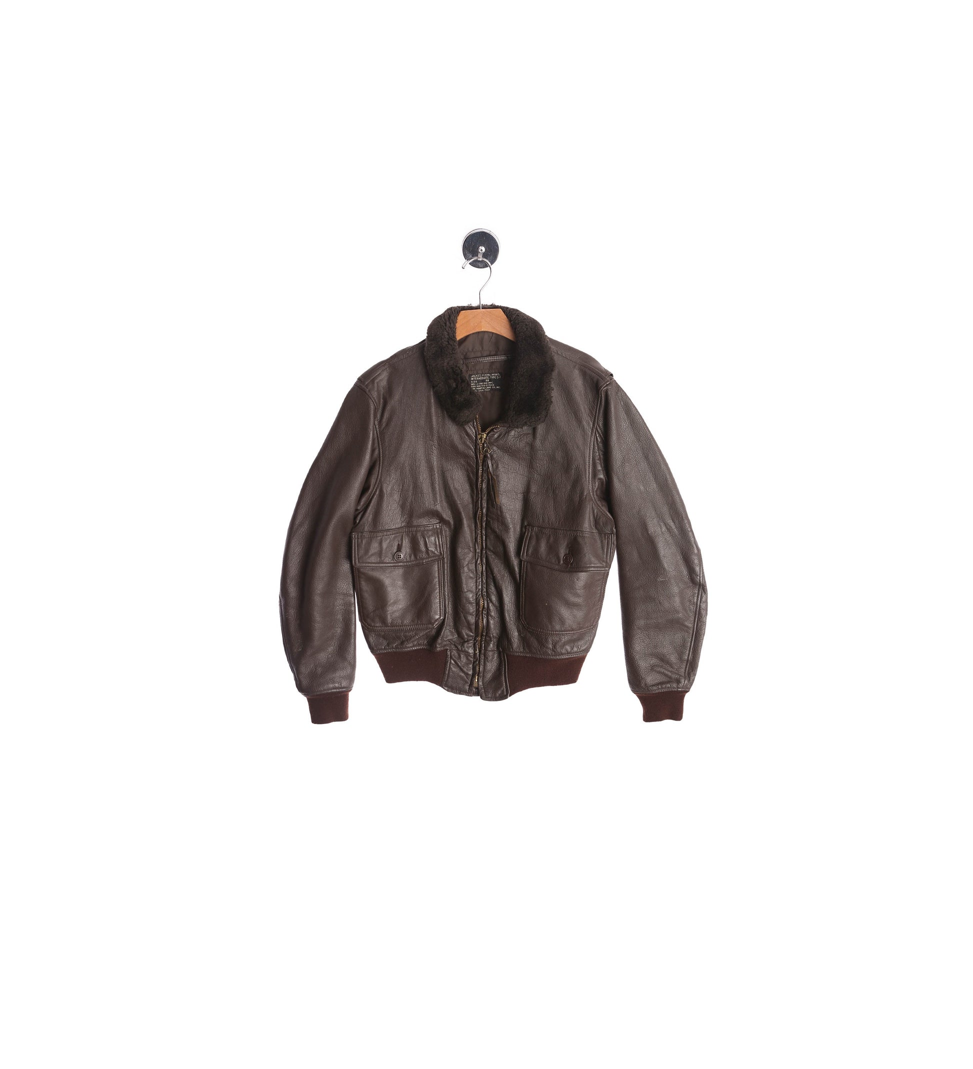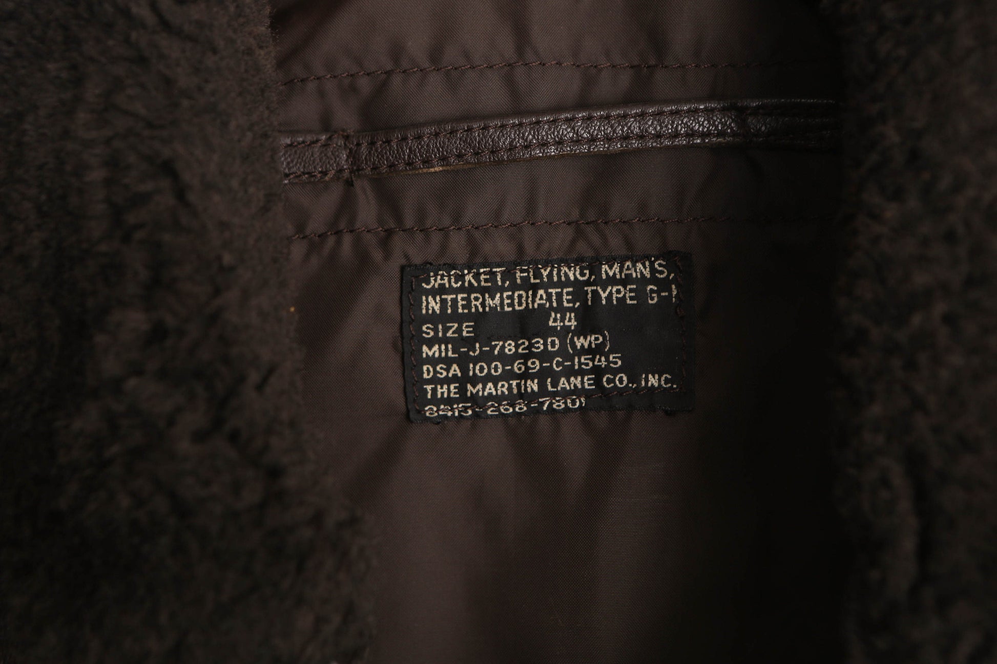 Men's Brown Leather Bomber Jacket with Faux Fur Collar - Type G-1 - Size 44 - By the Martin Lane Co. Inc