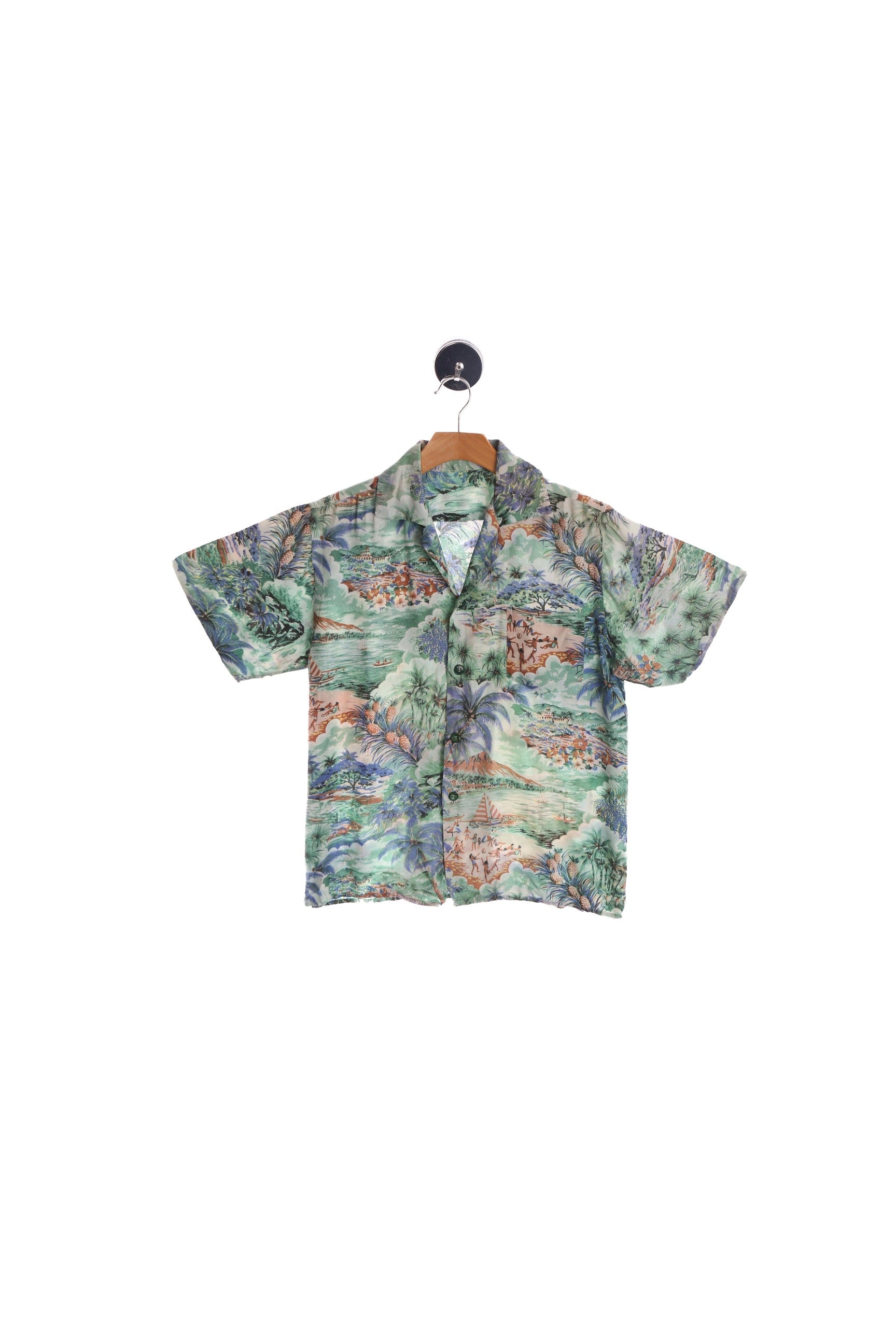 Men's Vintage Green Hawaiian Shirt - Beach Print
