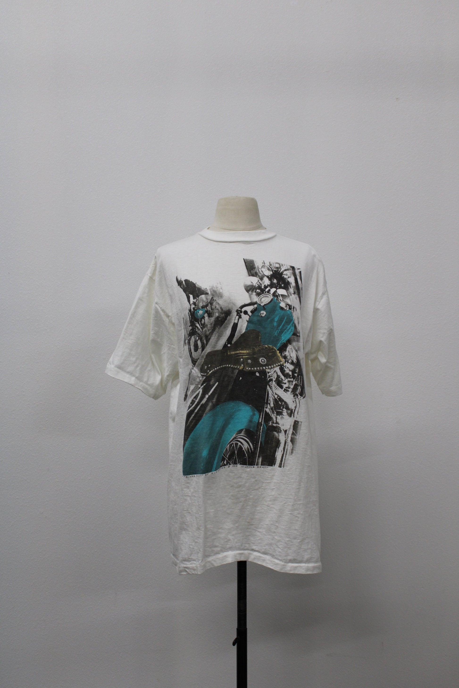 Motorcycles graphic white t-shirt drag racing biker muscle beach biker blues by eva estes