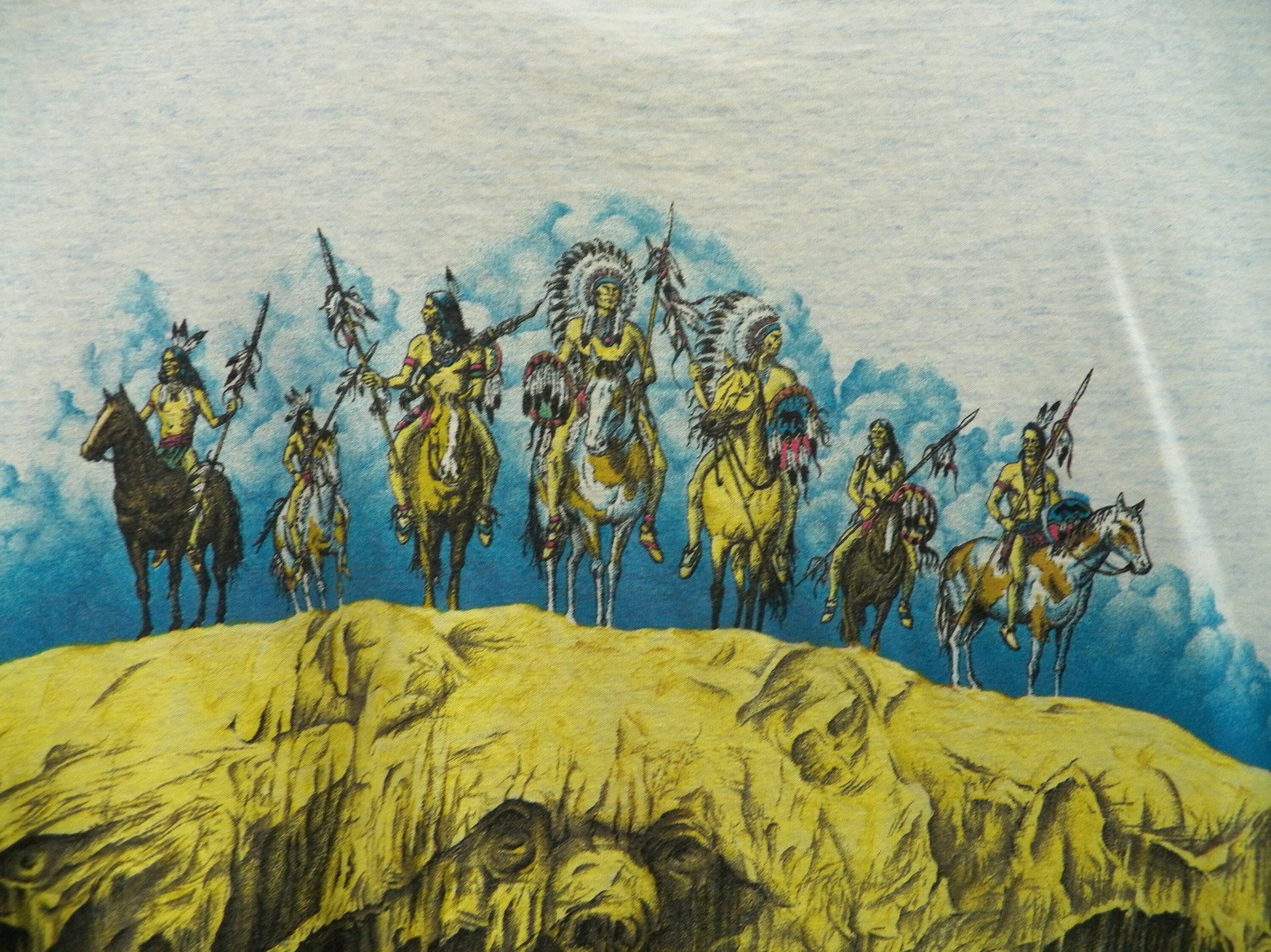 Native american graphic t-shirt double side signal sport label vintage gray indian cotton made in usa