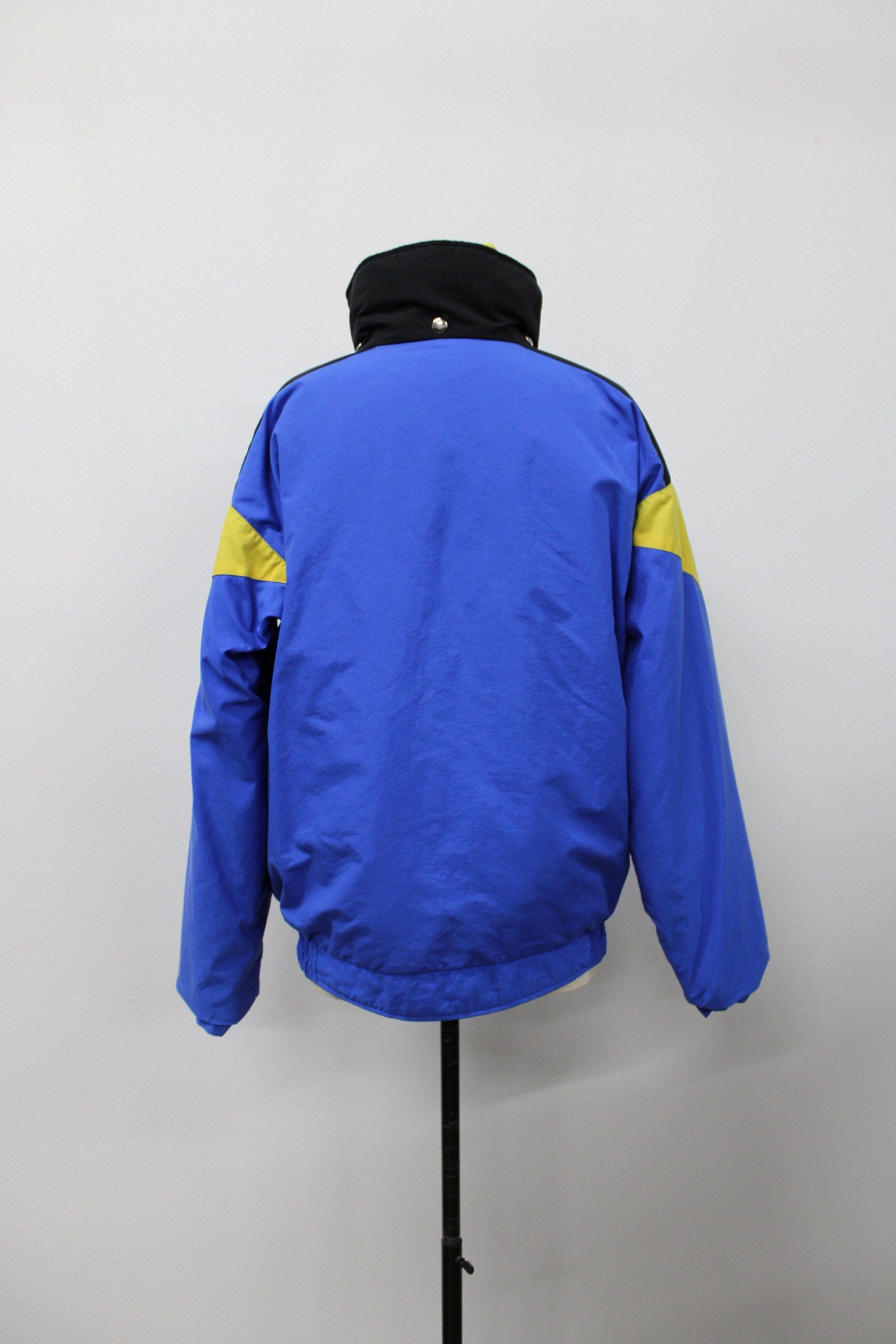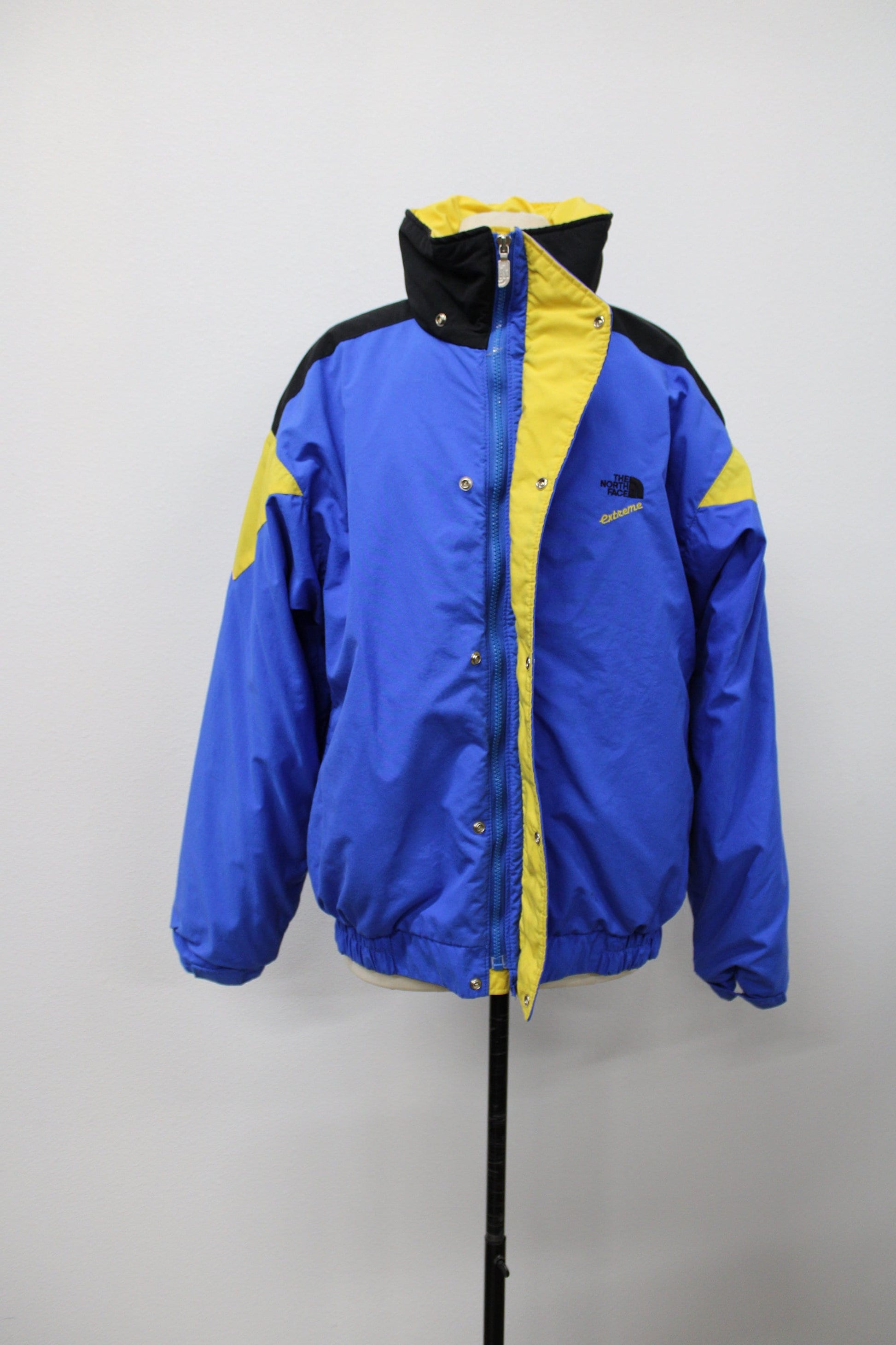 North face jacket extreme edition blue yellow bomber winter unisex double zipper snap closure black lining