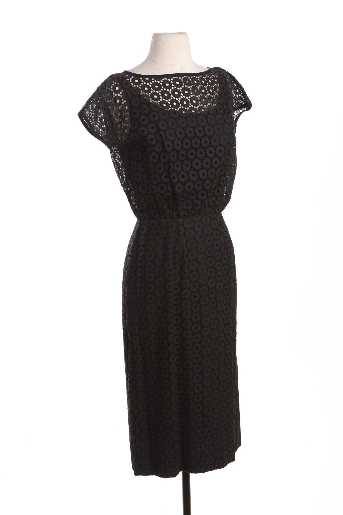 Pat Hartly Black Casual Dress - Circle Mesh Fabric Pattern - Era 50's - 60's